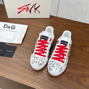 Giày nam Dolce Gabbana màu trắng họa tiết logo thêu vàng GND19