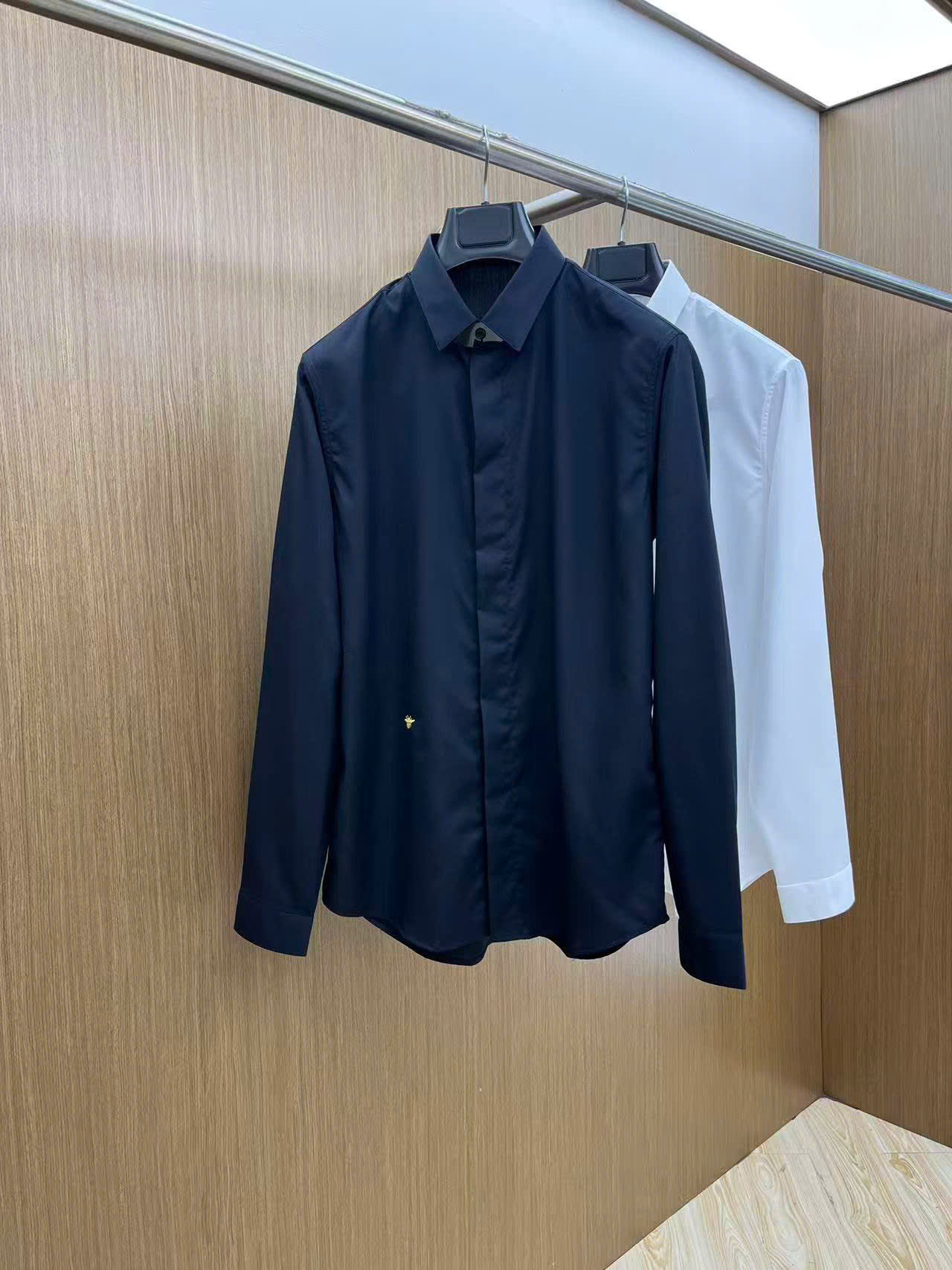 Ảnh chụp thật Áo sơ mi Dior họa tiết trơn thêu ong vàng ASMD06 hàng siêu cấp do xưởng sản xuất cung cấp.