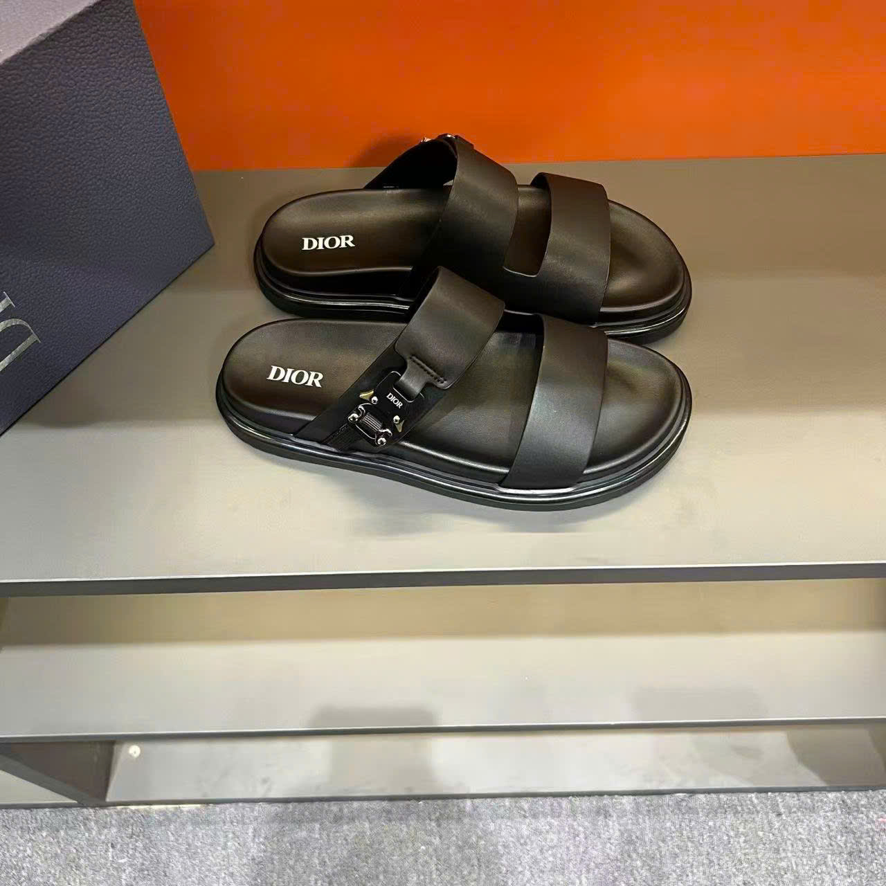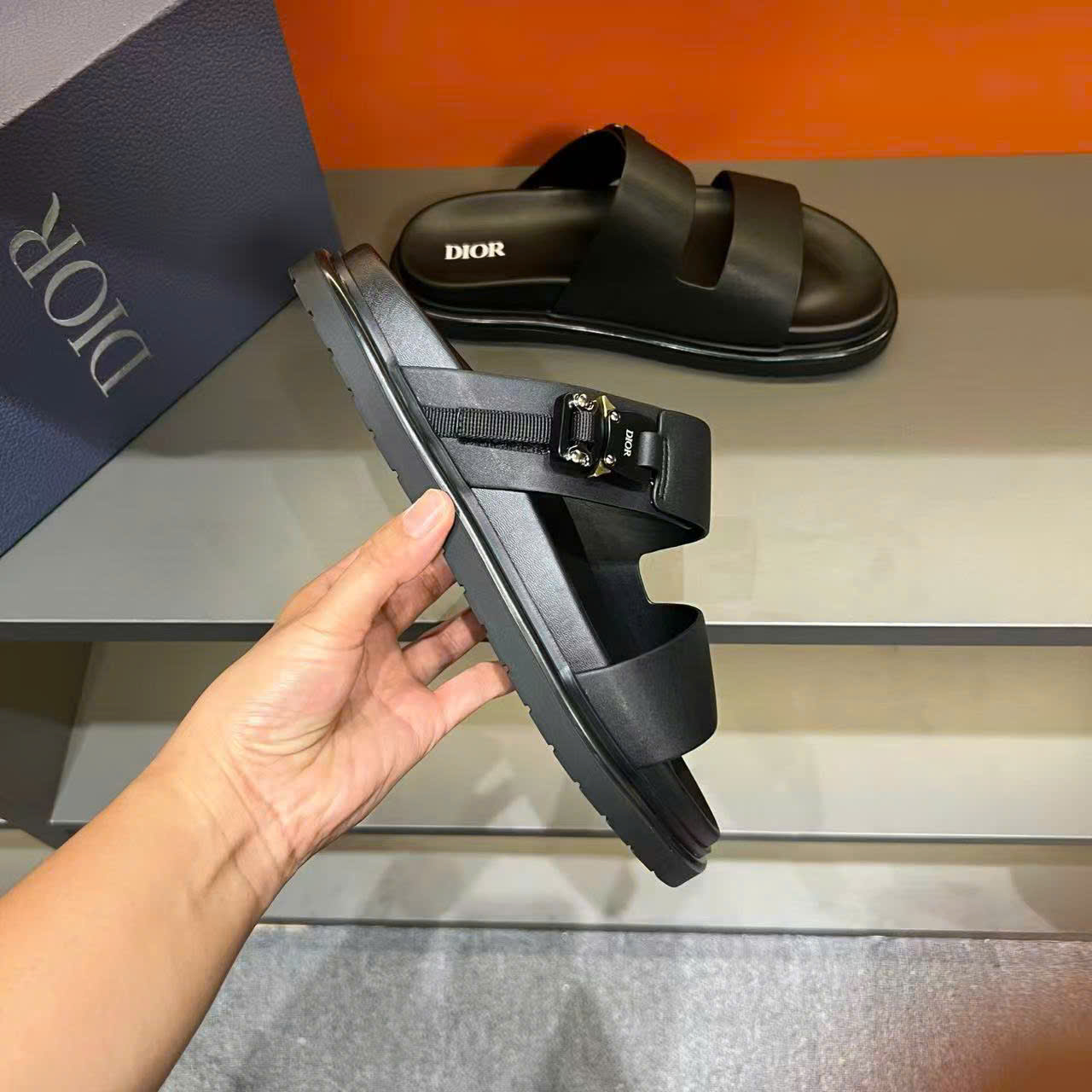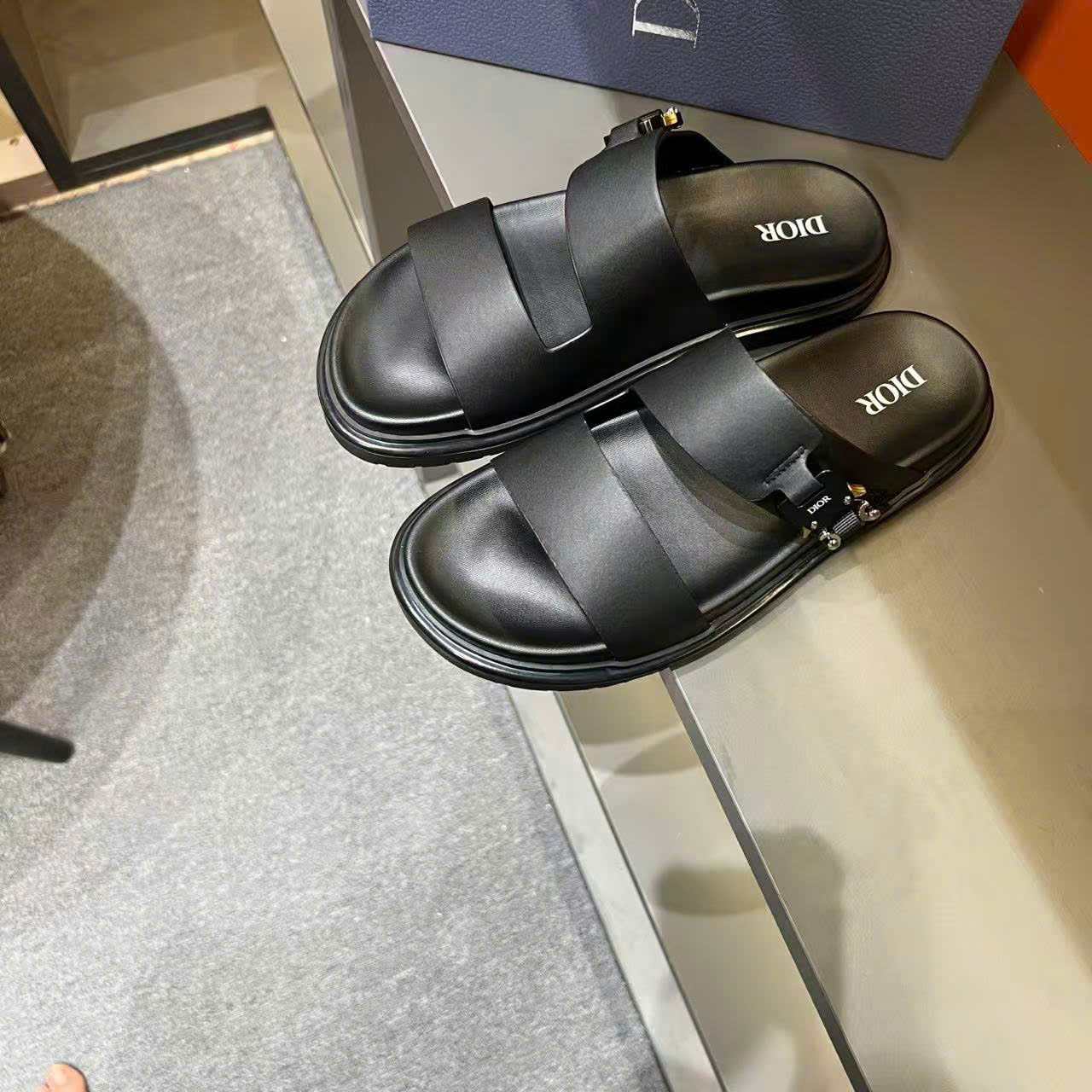 Ảnh chụp thật Dép nam Dior hai quai màu đen da trơn họa tiết logo cài DNDR34 hàng siêu cấp do xưởng sản xuất cung cấp.