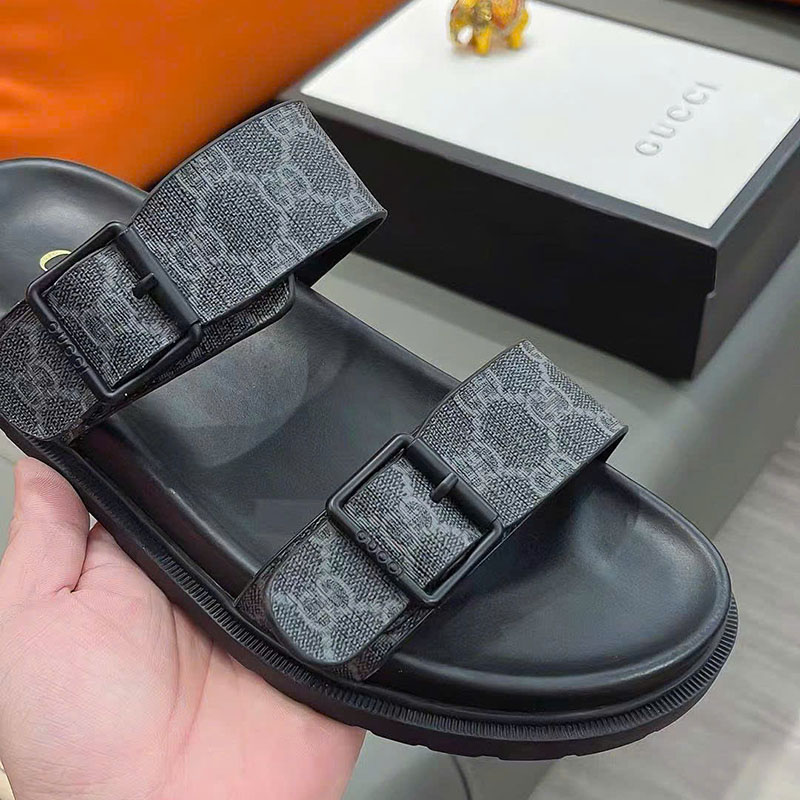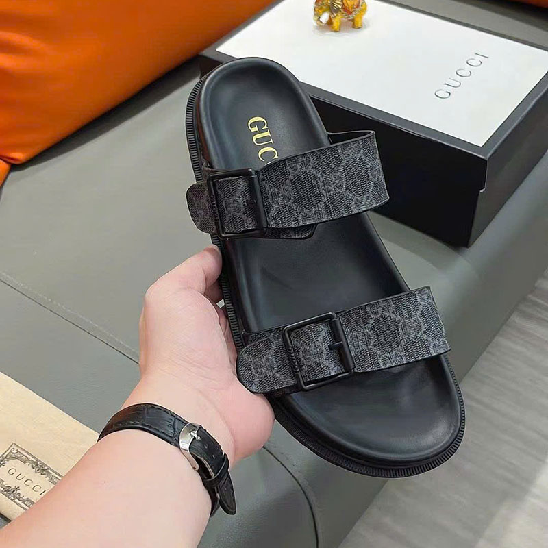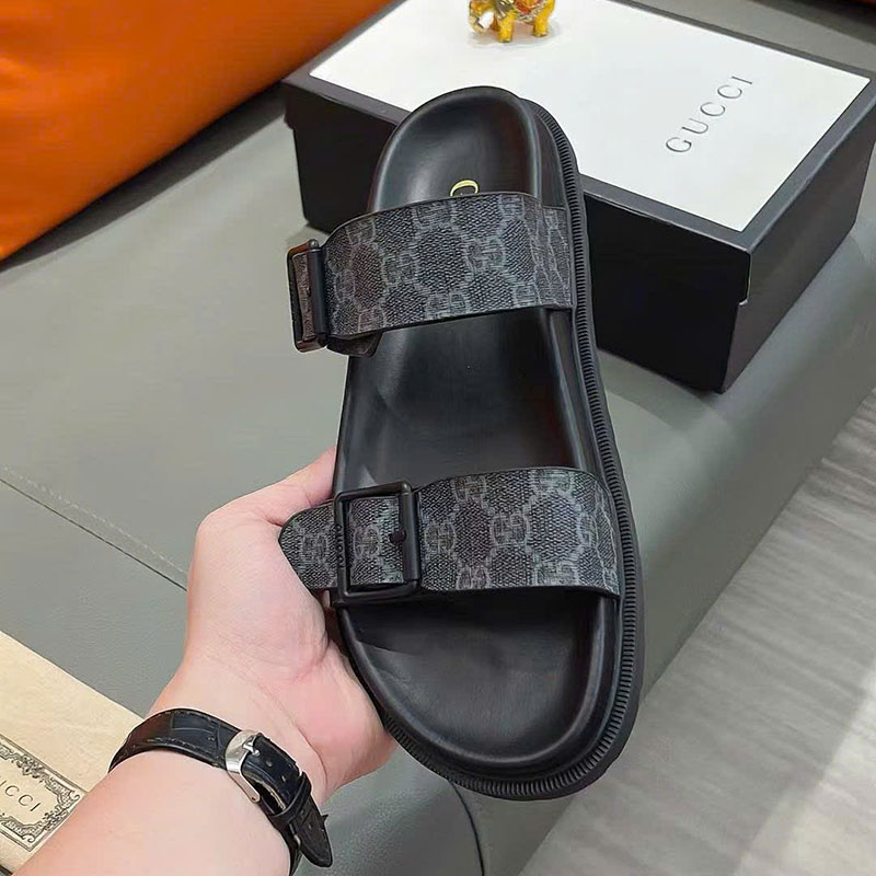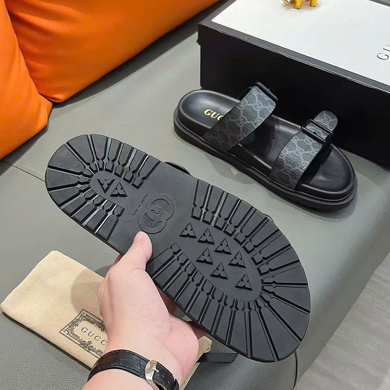 Ảnh chụp thật Dép nam Gucci hai quai màu đen họa tiết logo chữ khoá cài DNGC68 hàng siêu cấp do xưởng sản xuất cung cấp.