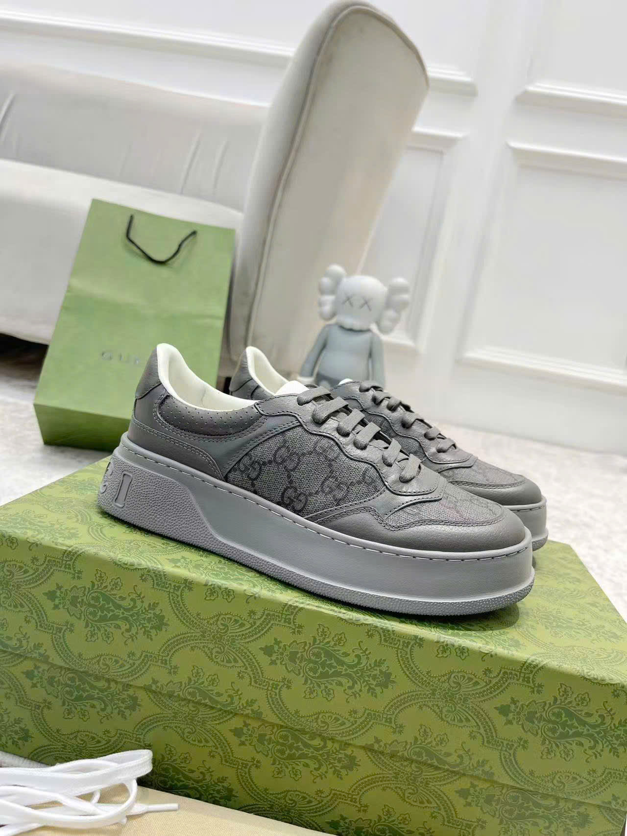 Ảnh chụp thật Giày Gucci cột dây màu ghi đen hoạ tiết logo GNGC98 hàng siêu cấp do xưởng sản xuất cung cấp.