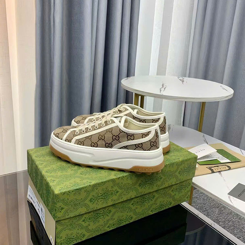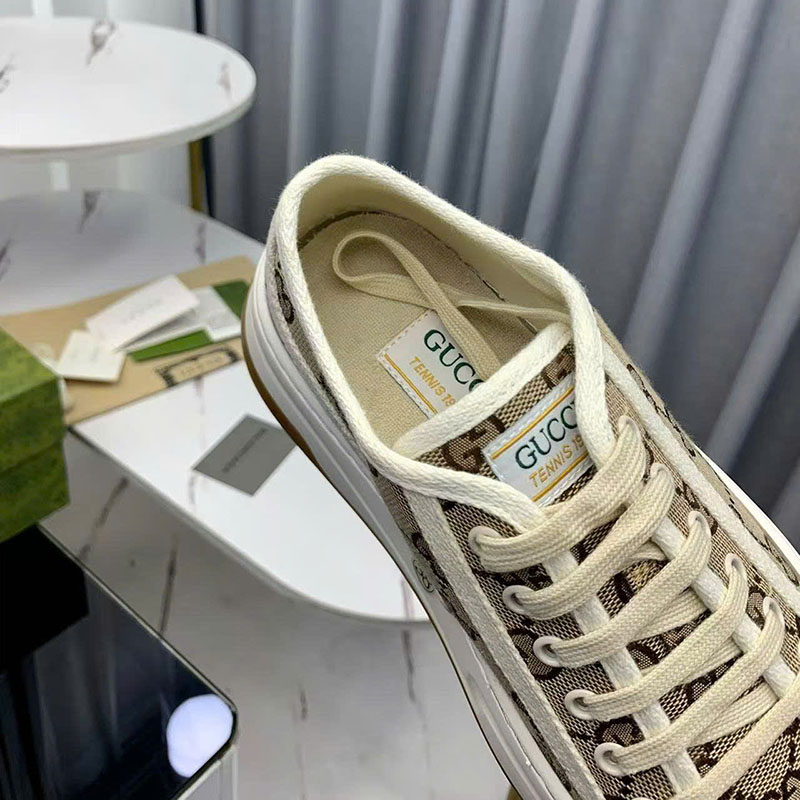 Ảnh chụp thật Giày Gucci cột dây màu nâu họa tiết logo chữ likeauth GNGC95 hàng siêu cấp do xưởng sản xuất cung cấp.