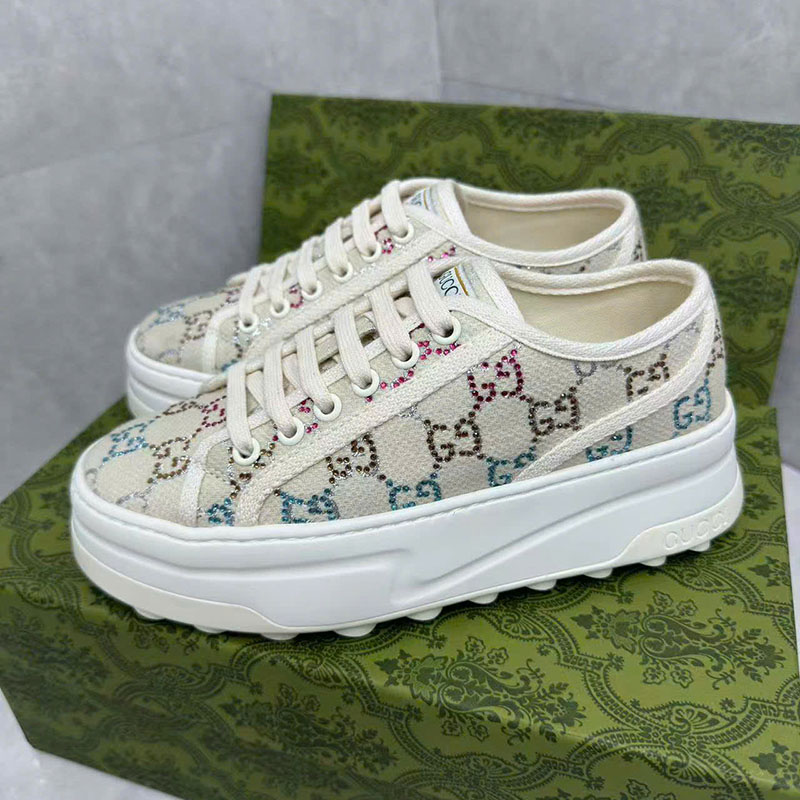 Giày Gucci cột dây màu trắng họa tiết logo chữ nhiều màu likeauth GNGC94