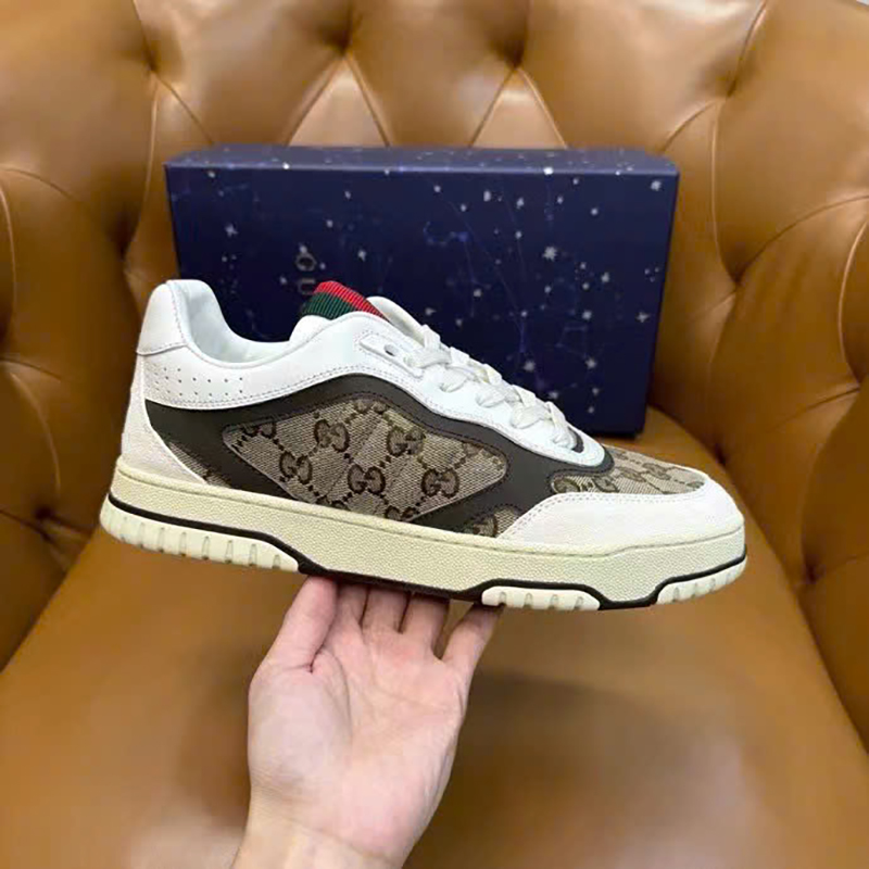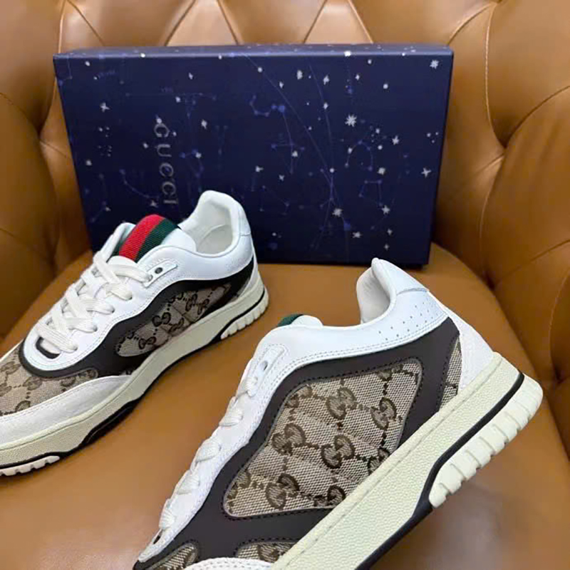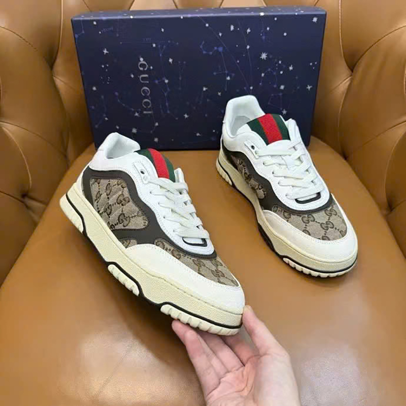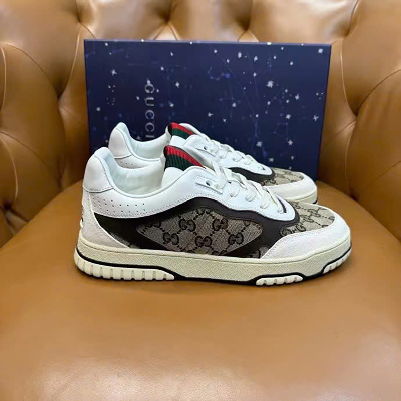 Ảnh chụp thật Giày Gucci nam màu trắng phối xanh họa tiết tag xanh đỏ GNGC91 hàng siêu cấp do xưởng sản xuất cung cấp.