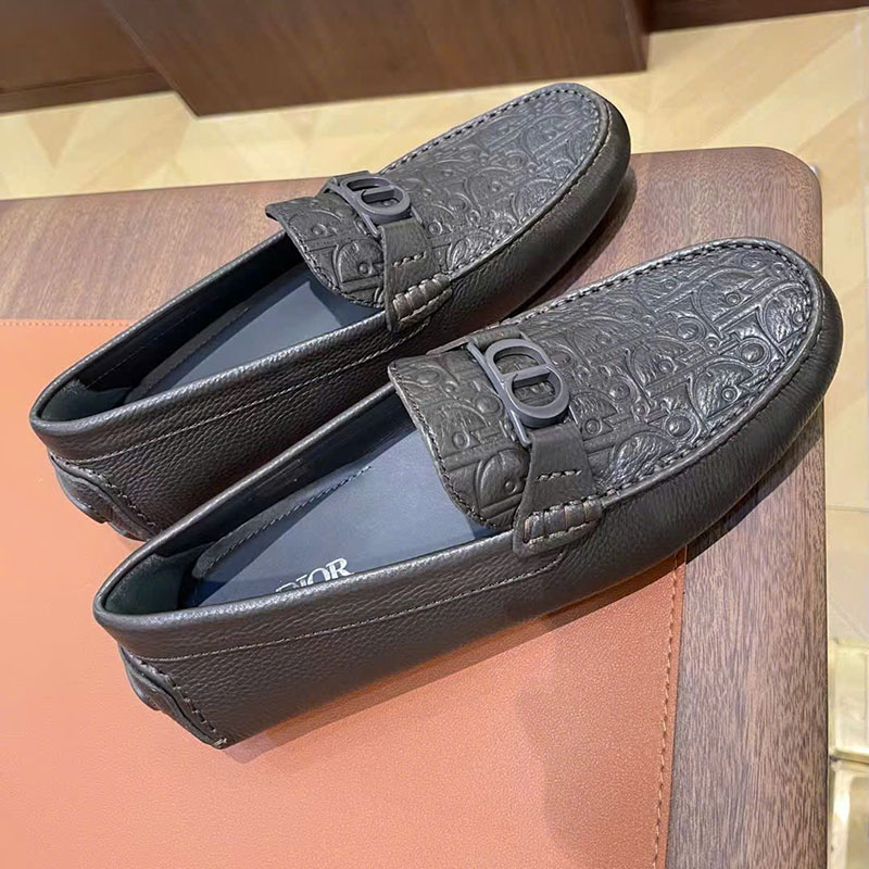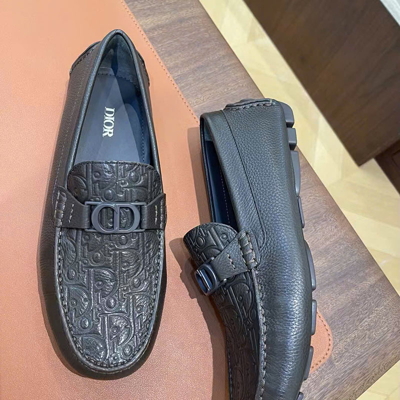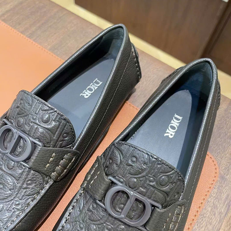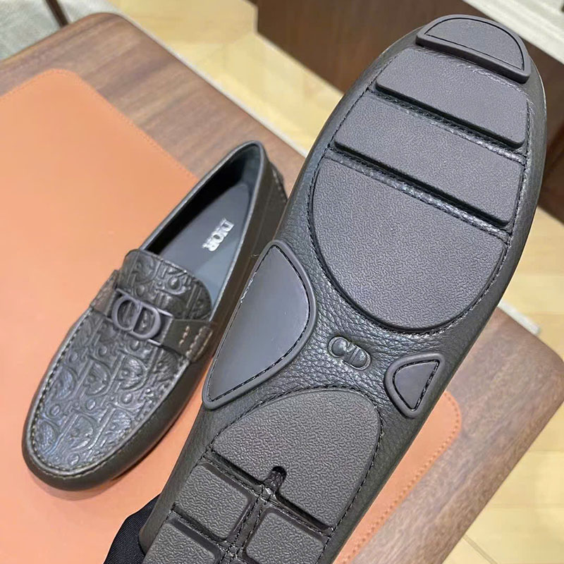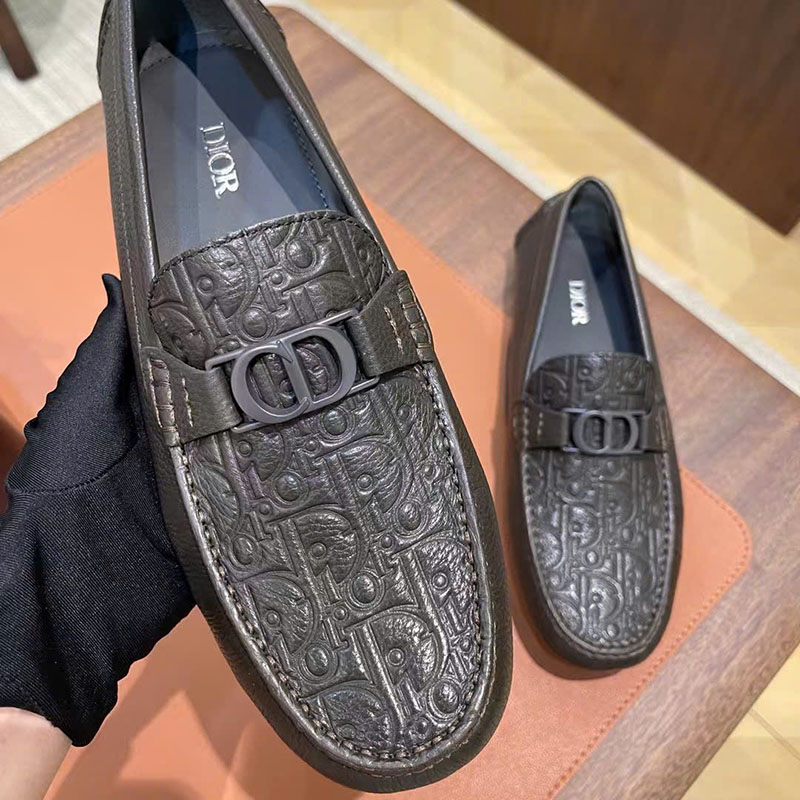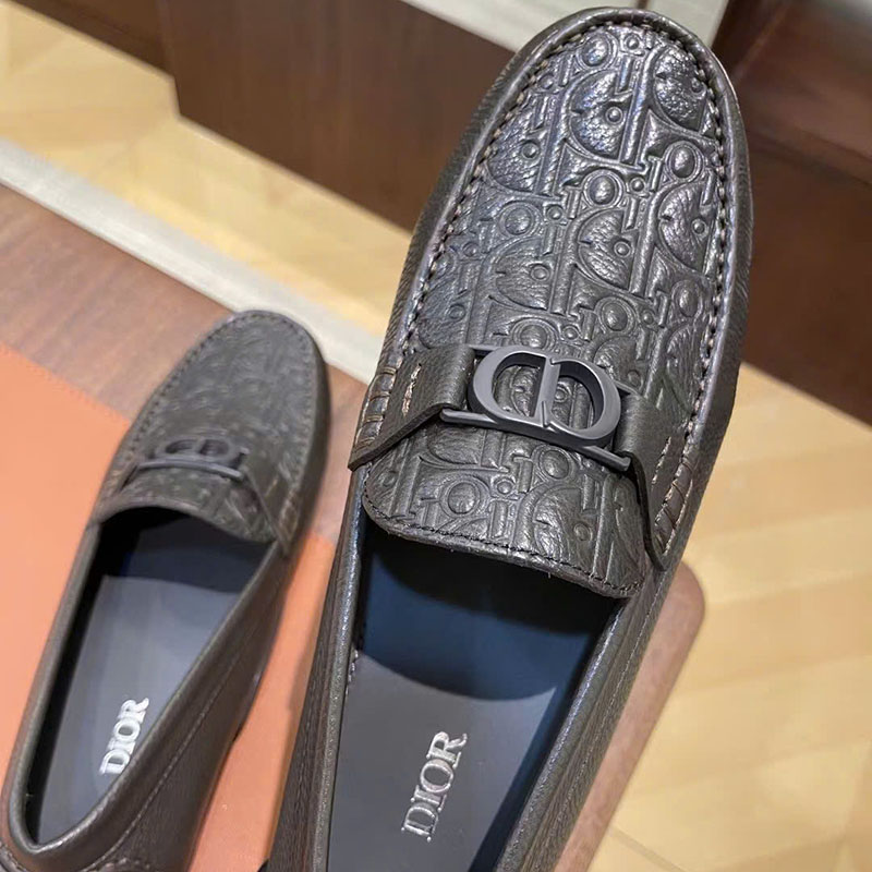 Ảnh chụp thật Giày lười Dior màu nâu họa tiết dập logo chìm likeauth GLDR18 hàng siêu cấp do xưởng sản xuất cung cấp.