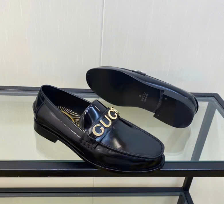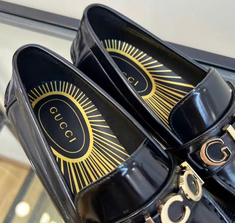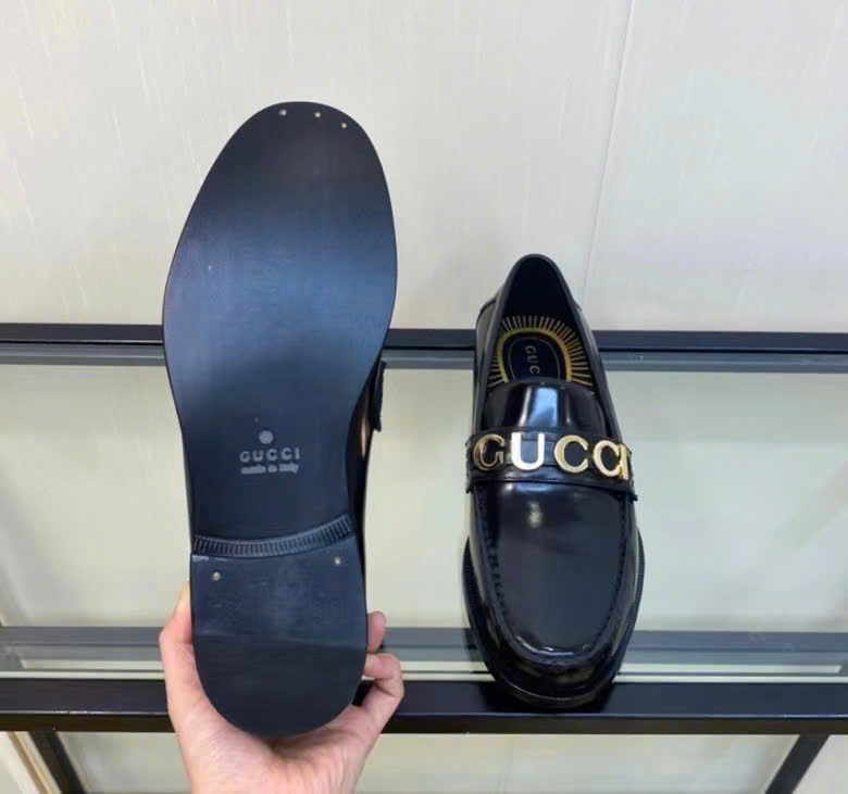 Ảnh chụp thật Giày lười Gucci nam đế cao màu đen họa tiết khóa chữ vàng GLGC69 hàng siêu cấp do xưởng sản xuất cung cấp.