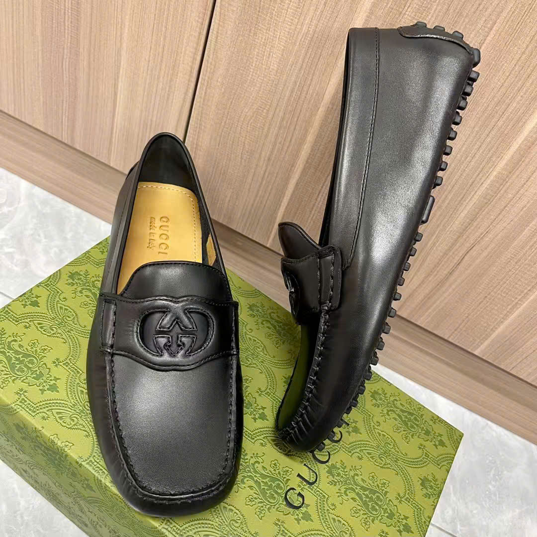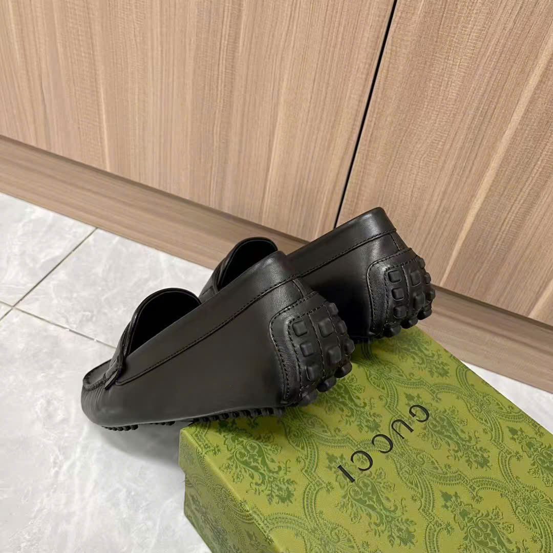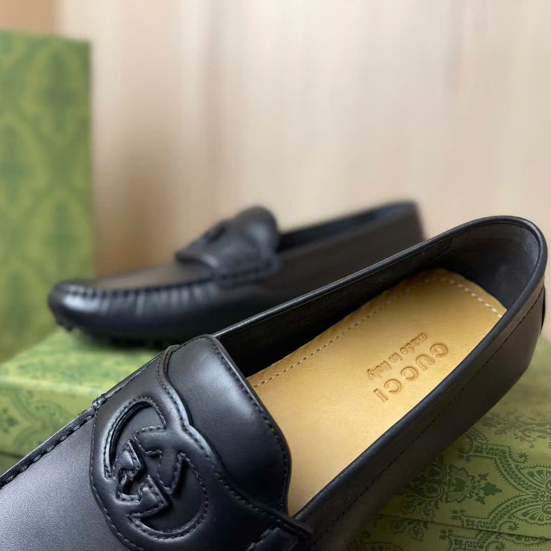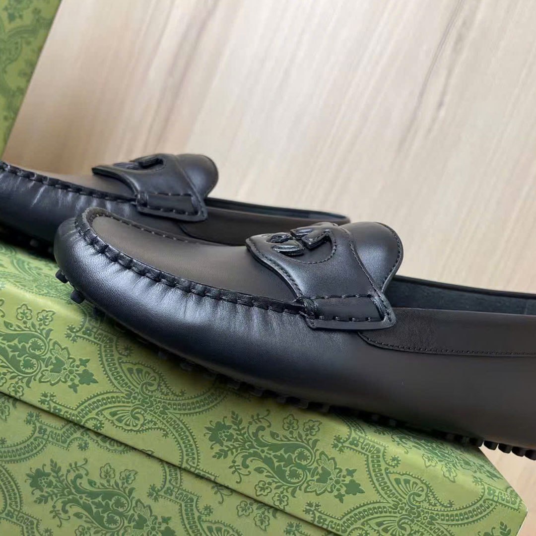 Ảnh chụp thật Giày lười Gucci nam màu đen da trơn họa tiết logo G ẩn GLGC87 hàng siêu cấp do xưởng sản xuất cung cấp.