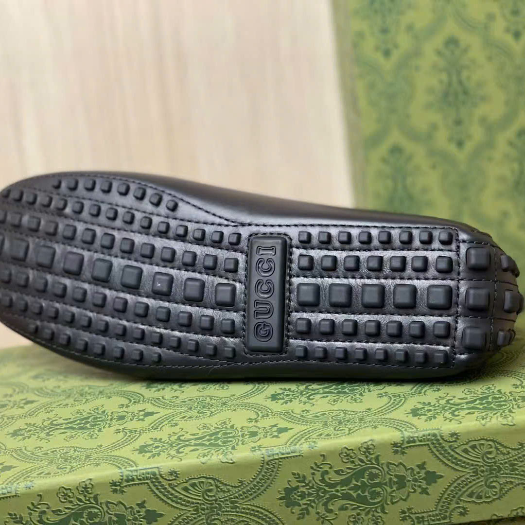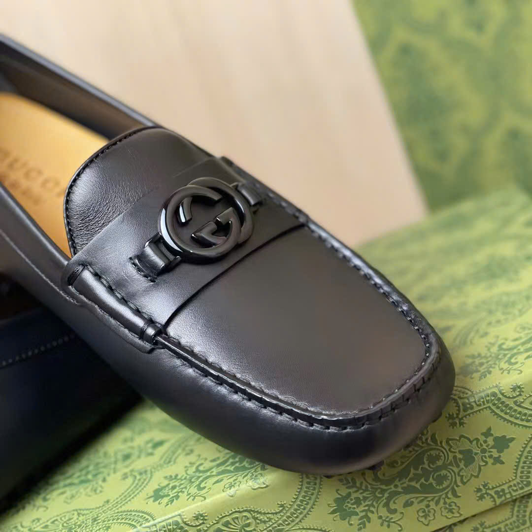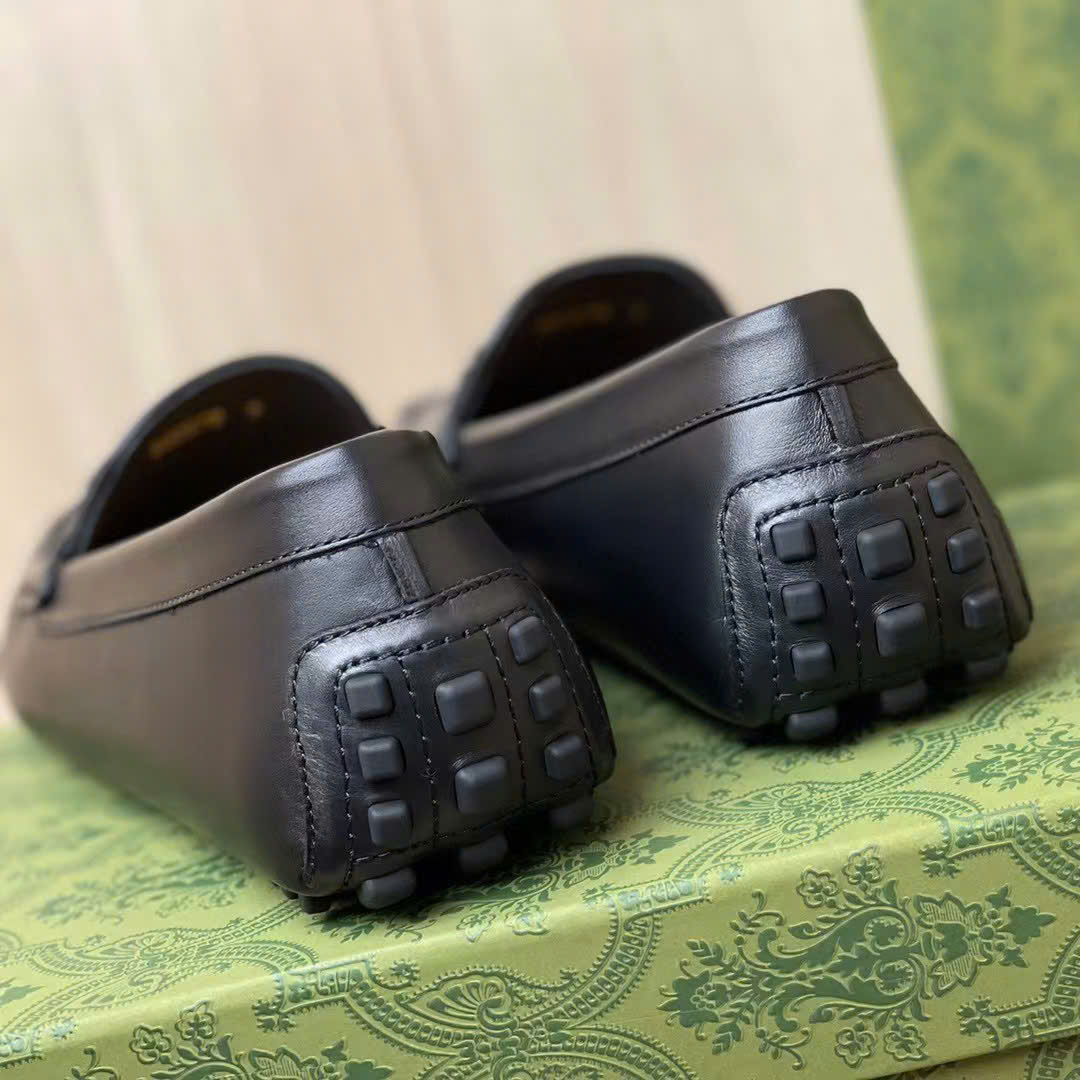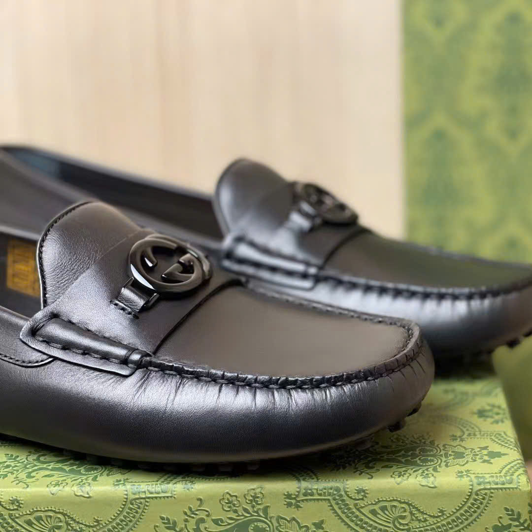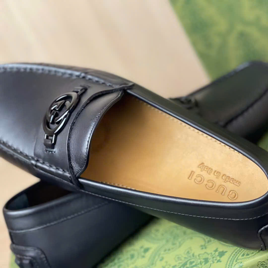 Ảnh chụp thật Giày lười Gucci nam màu đen da trơn hoạ tiết logo nổi GLGC02 hàng siêu cấp do xưởng sản xuất cung cấp.