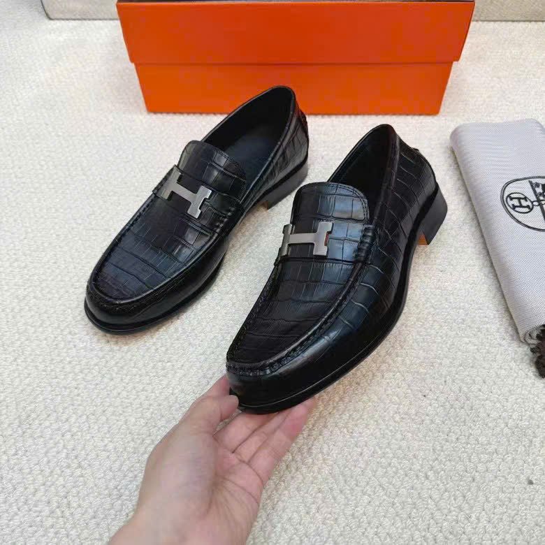 Hãy là người đầu tiên nhận xét “Giày lười Hermes đế cao màu đen họa tiết vân cá xấu chữ H trắng GLH87”