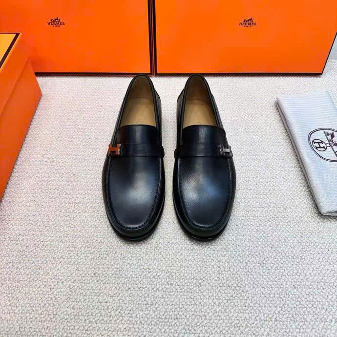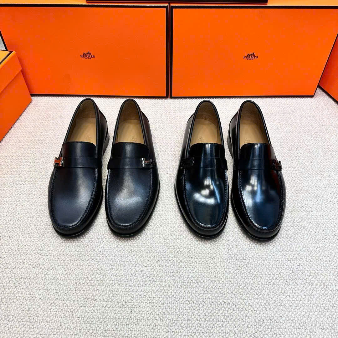 Ảnh chụp thật Giày lười Hermes màu đen da trơn họa tiết H lệch trắng GLH96 hàng siêu cấp do xưởng sản xuất cung cấp.