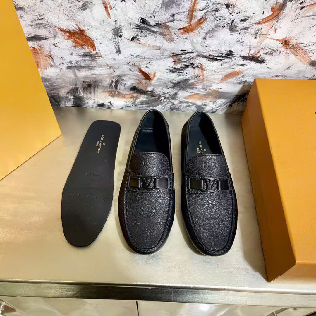 Ảnh chụp thật Giày lười Louis Vuitton da nhăn đen họa tiết logo hoa chìm likeauth GLLV108 hàng siêu cấp do xưởng sản xuất cung cấp.