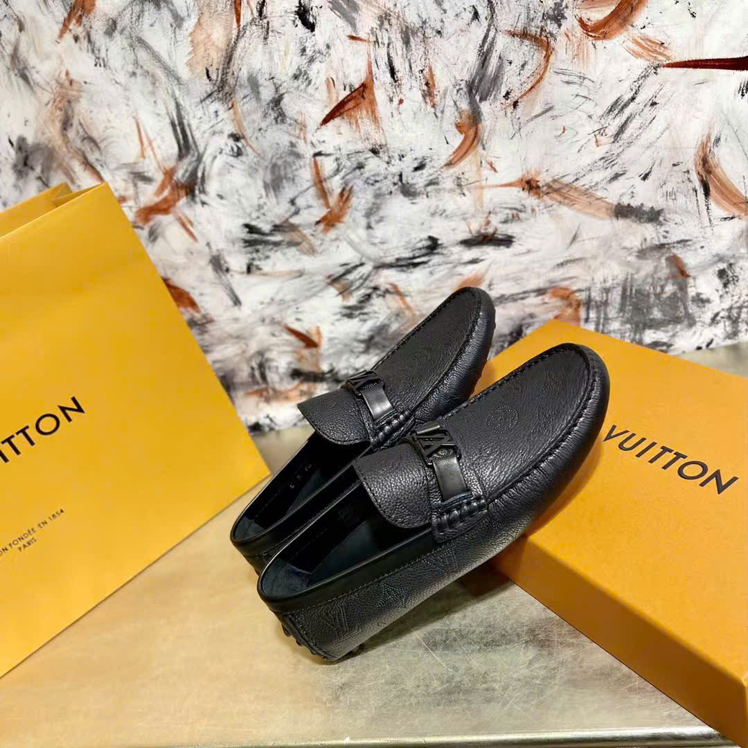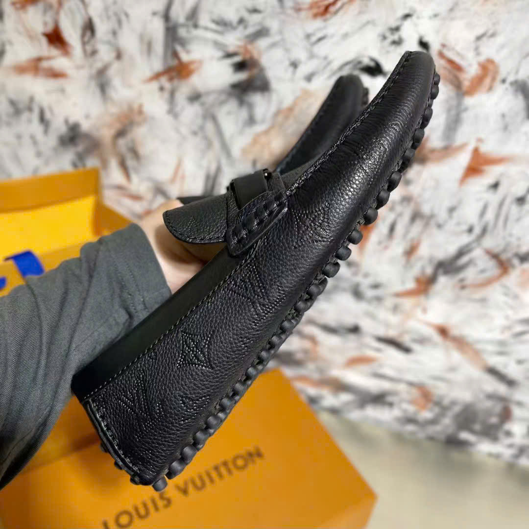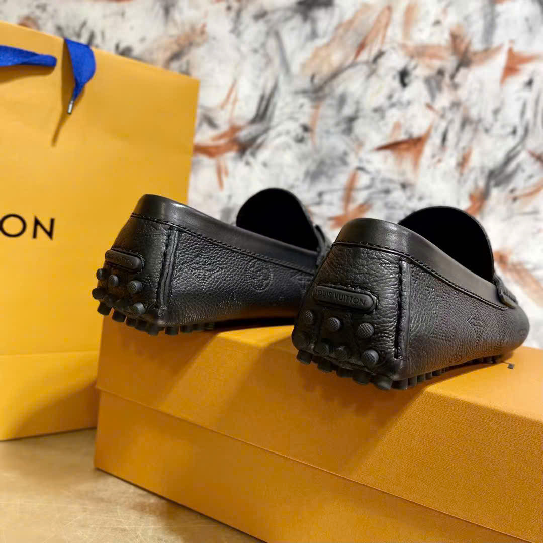 Ảnh chụp thật Giày lười Louis Vuitton da nhăn đen họa tiết logo hoa chìm likeauth GLLV108 hàng siêu cấp do xưởng sản xuất cung cấp.