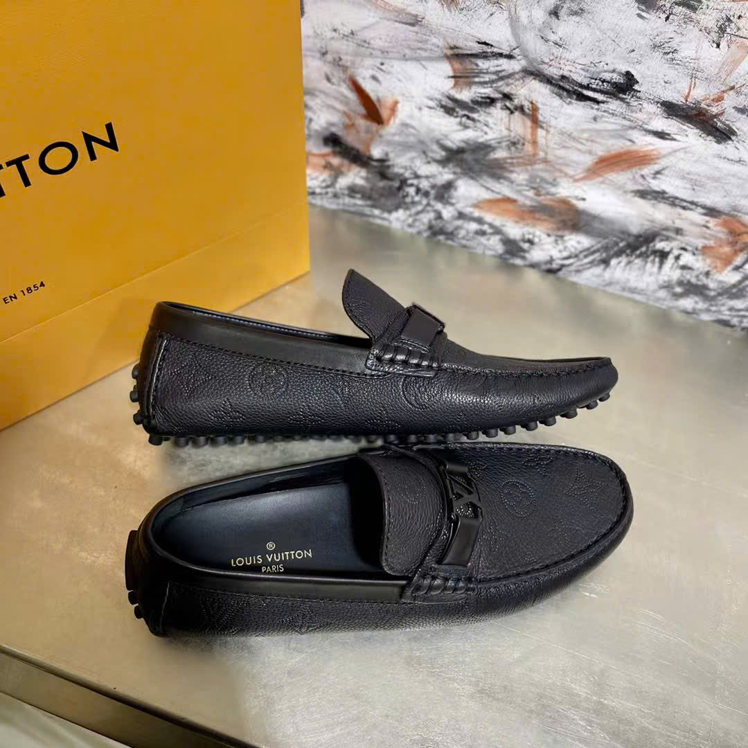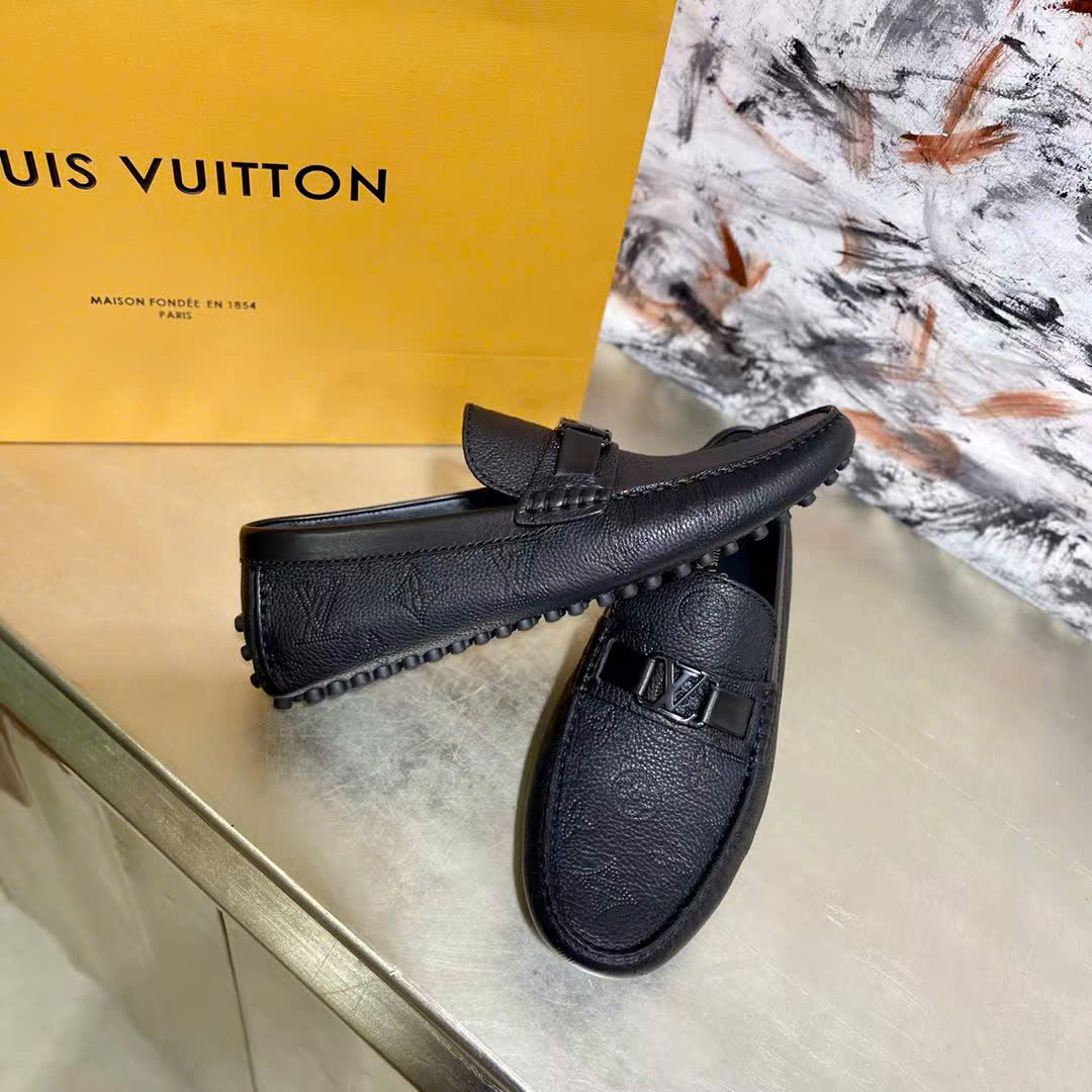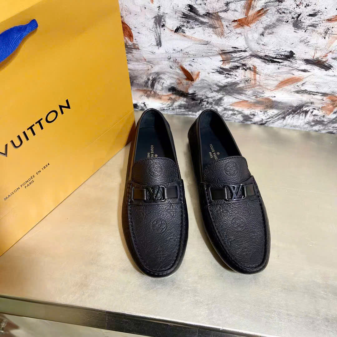 Ảnh chụp thật Giày lười Louis Vuitton da nhăn đen họa tiết logo hoa chìm likeauth GLLV108 hàng siêu cấp do xưởng sản xuất cung cấp.