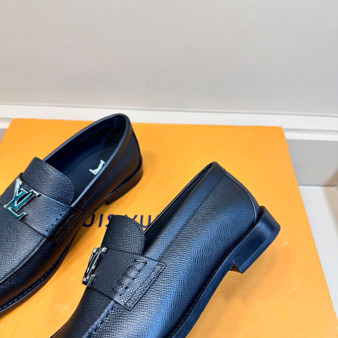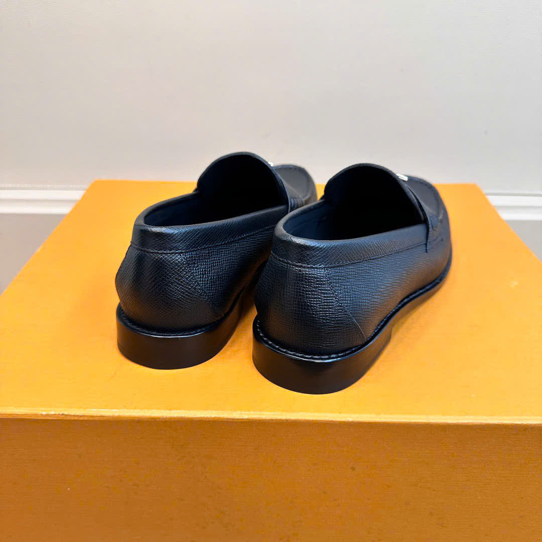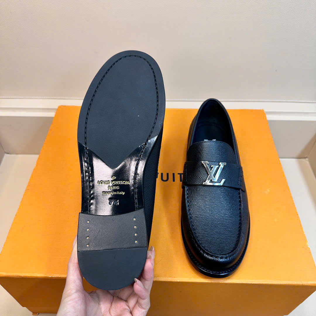 Ảnh chụp thật Giày lười Louis Vuitton đế cao da taiga đen họa tiết logo trắng GLLV69 hàng siêu cấp do xưởng sản xuất cung cấp.