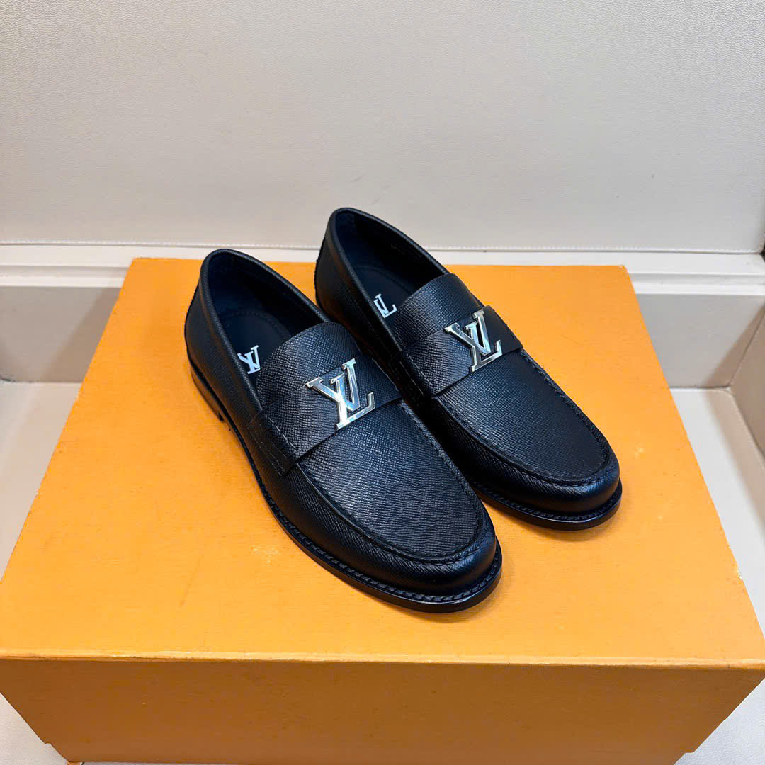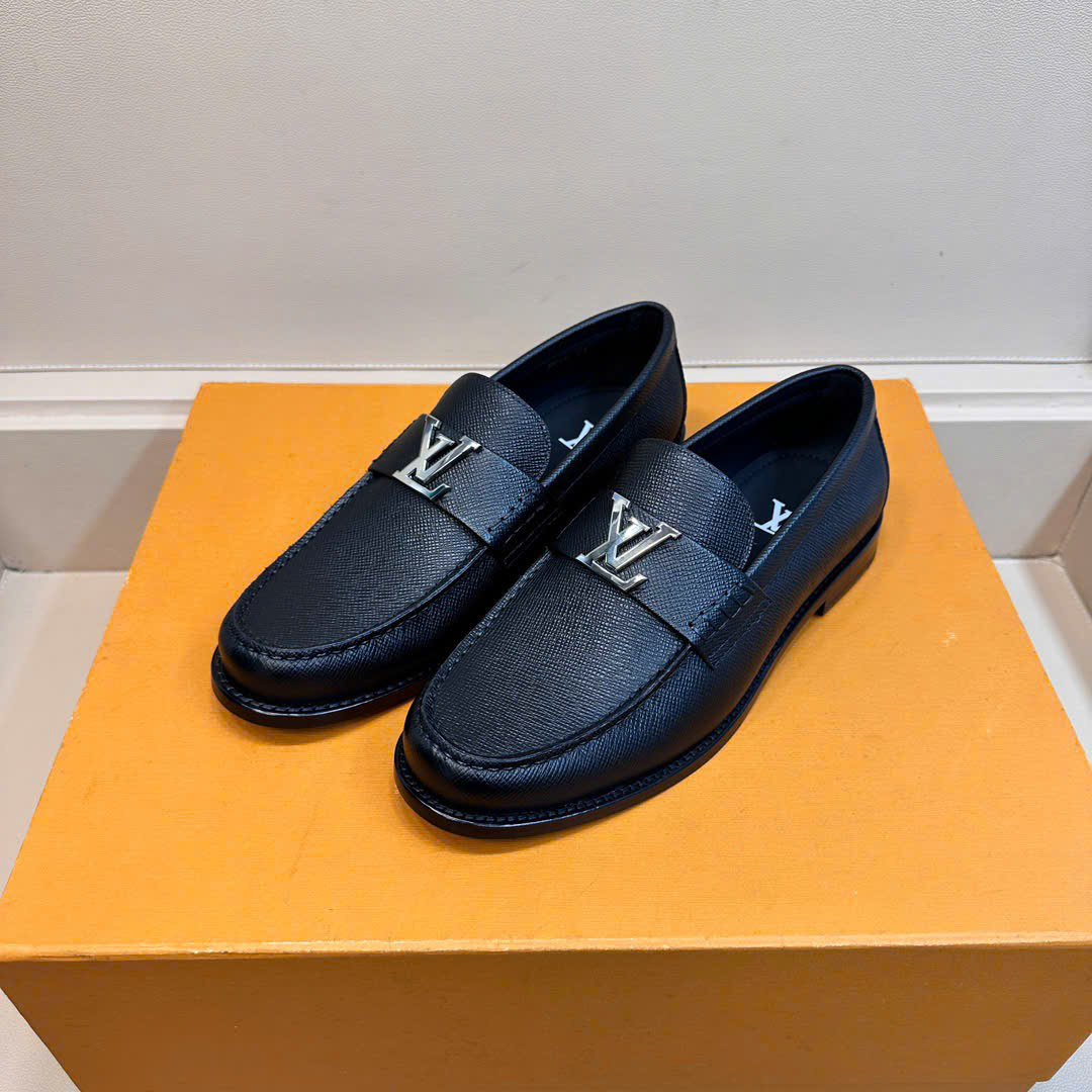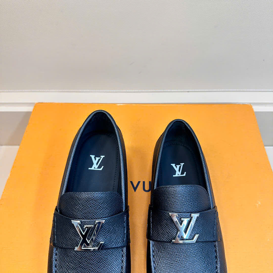 Ảnh chụp thật Giày lười Louis Vuitton đế cao da taiga đen họa tiết logo trắng GLLV69 hàng siêu cấp do xưởng sản xuất cung cấp.
