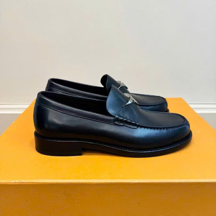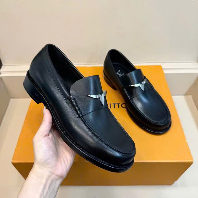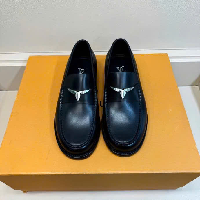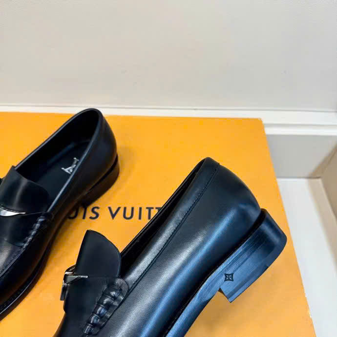 Ảnh chụp thật Giày Lười Louis Vuitton đế cao da trơn đen họa tiết hoa khuyết trắng GLLV125 hàng siêu cấp do xưởng sản xuất cung cấp.