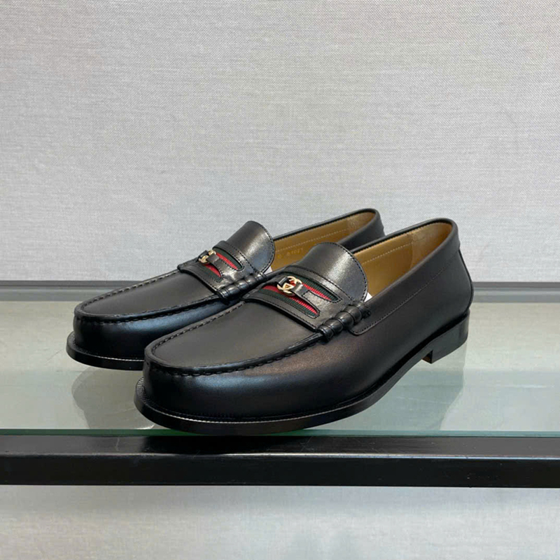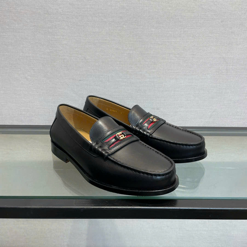 Giày lười nam Gucci họa tiết logo vàng màu đen likeauth GLGC85