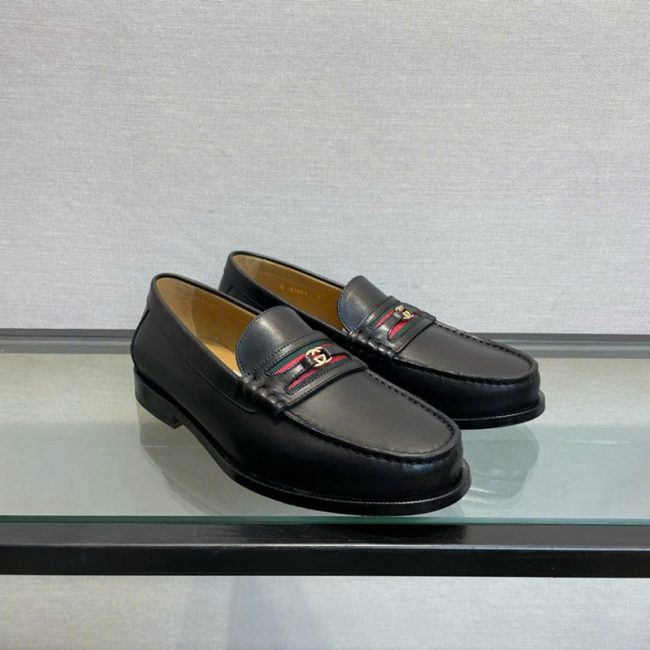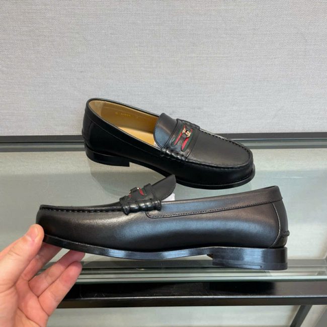 Ảnh chụp thật Giày lười nam Gucci họa tiết logo vàng màu đen likeauth GLGC85 hàng siêu cấp do xưởng sản xuất cung cấp.