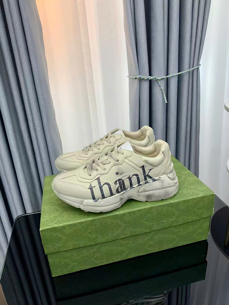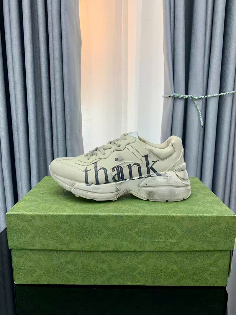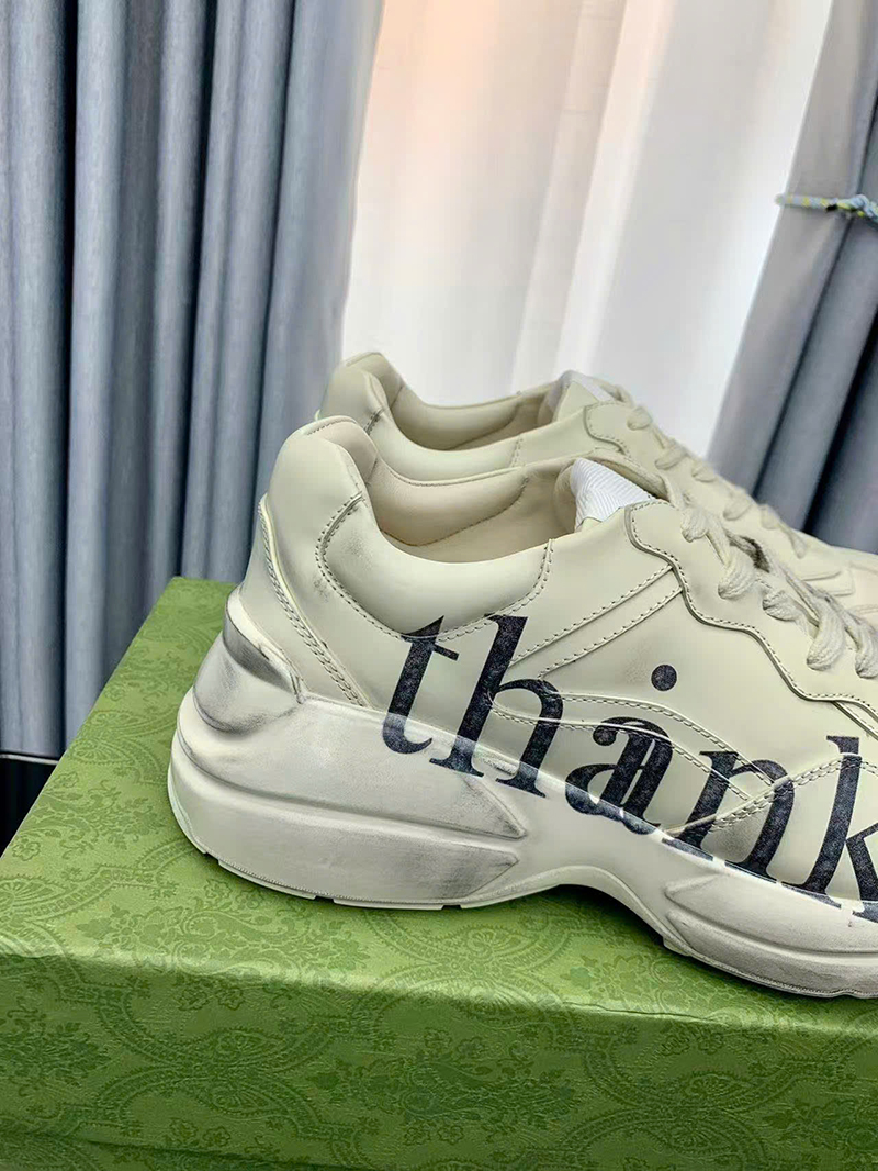 Ảnh chụp thật Giày nam Gucci màu be họa tiết chữ THANK bẩn GNGC88 hàng siêu cấp do xưởng sản xuất cung cấp.