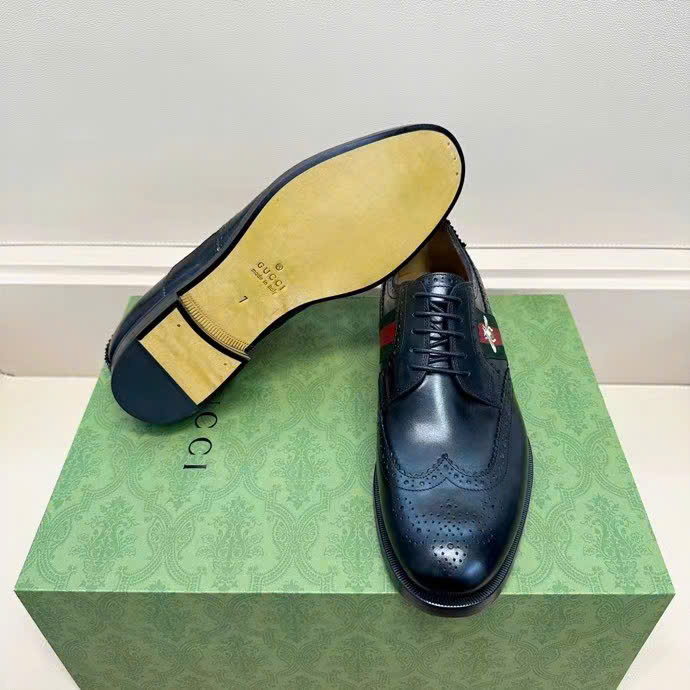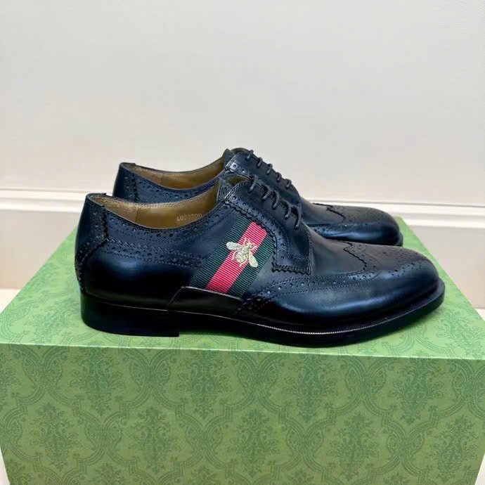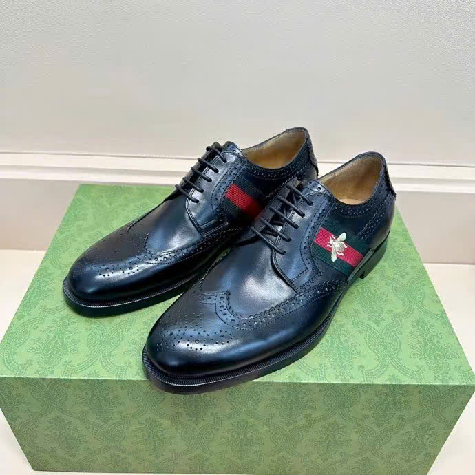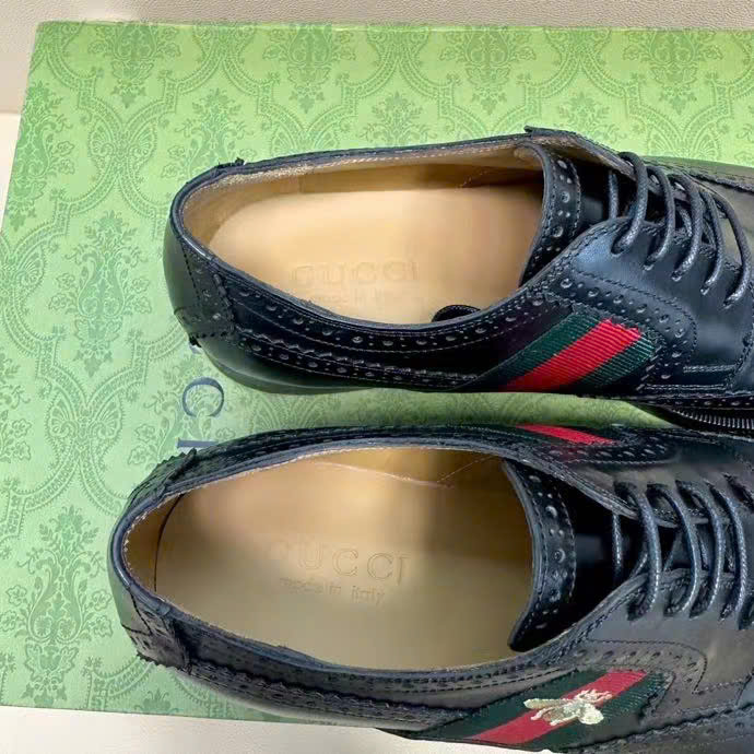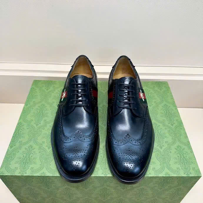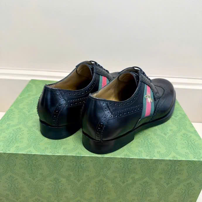 Ảnh chụp thật Giày nam Gucci màu đen kẻ đỏ thêu GNGC97 hàng siêu cấp do xưởng sản xuất cung cấp.