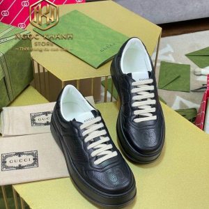 Giày Gucci cột dây màu đen họa tiết chìm likeauth GNGC56
