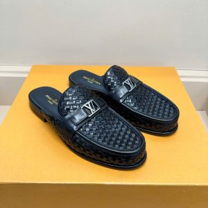 Mẫu giày lười LV nam – GLLV71 có họa tiết caro dập chìm, có độ sáng bóng. Đặc biệt, quai giày được khoét lỗ hình kim cương, không sử dụng khóa LV truyền thống như các mẫu giày khác.