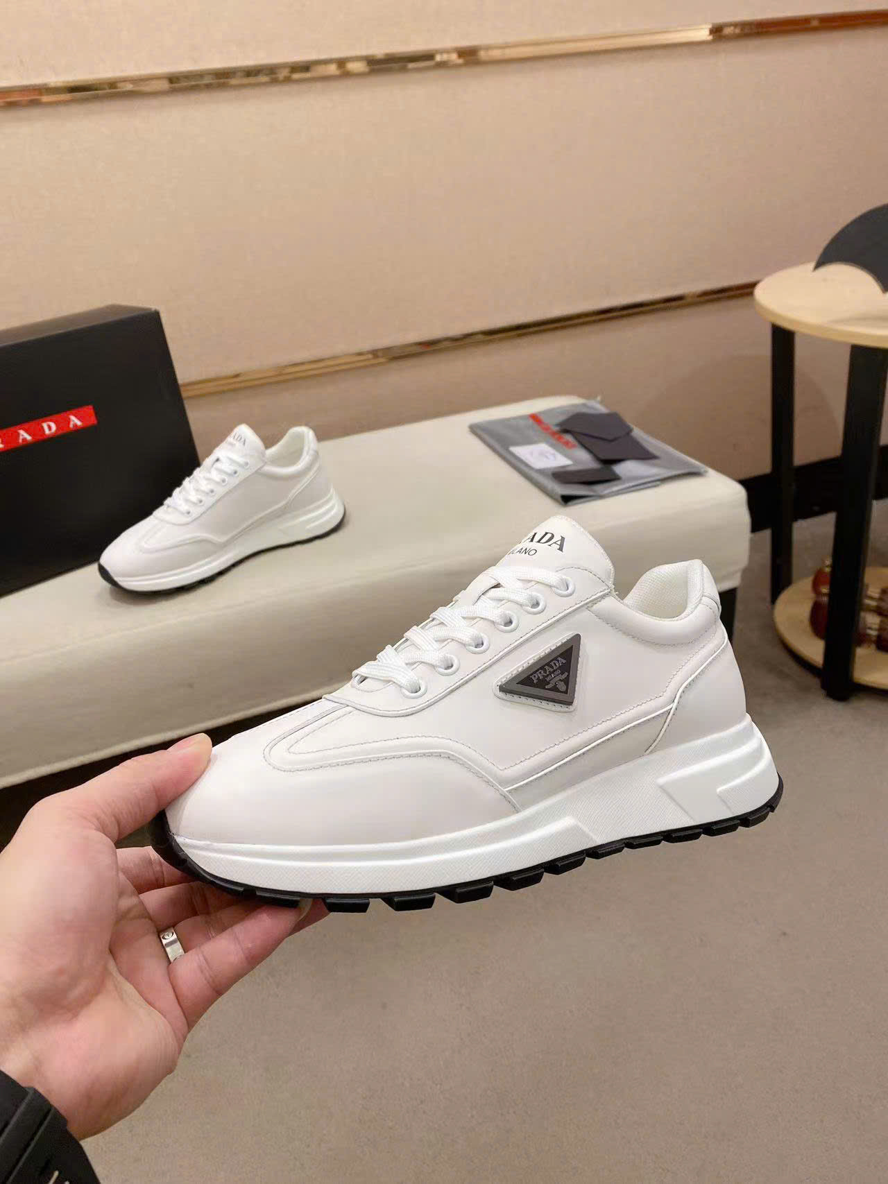 Giày nam Prada màu trắng da trơn họa tiết logo tam giác đen GNP28 siêu cấp có thể không có sẵn size hoặc màu như bạn mong muốn, vui lòng liên hệ với shop để check size và nhận tư vấn từ shop.