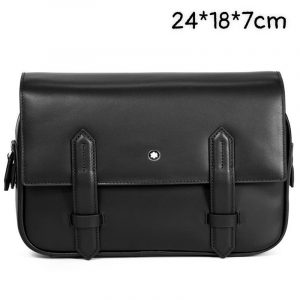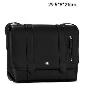 Túi đeo chéo Montbanc da trơn đen hoạ tiết hai soc dọc nắp đậy TNM02