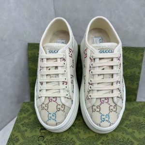 Giày Gucci cột dây màu trắng họa tiết logo chữ nhiều màu likeauth GNGC94