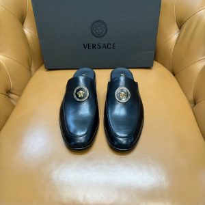 Sục nam Versace màu đen da trơn hoạ tiết logo tròn GLV19