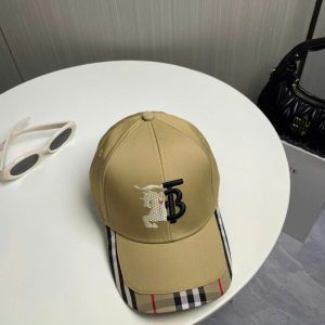 Mũ nam Burberry màu be họa tiết logo thêu phối viền kẻ MNBR19