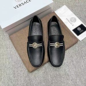 Giày lười Versace màu đen da sần hoạ tiết logo tròn tang chữ GLV20