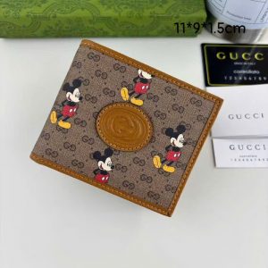 Ví nam Gucci bỏ túi màu nâu hoạ tiết hình micky logo tròn VNGC65