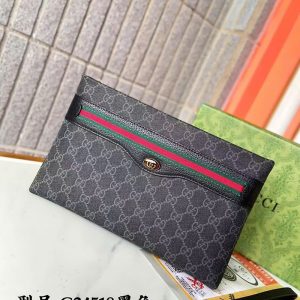 Ví nam Gucci cầm tay màu đen họa tiết in logo dáng chữ nhật VNGC64