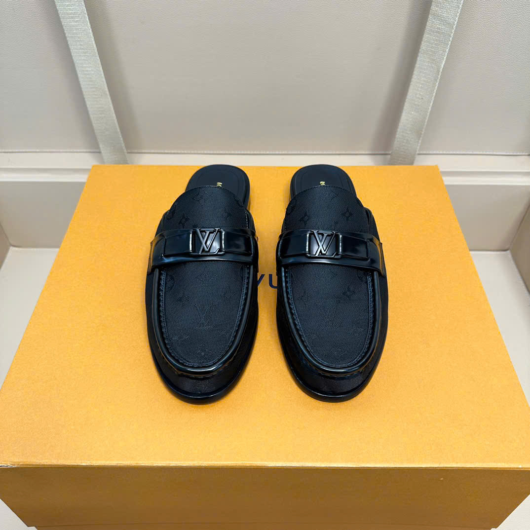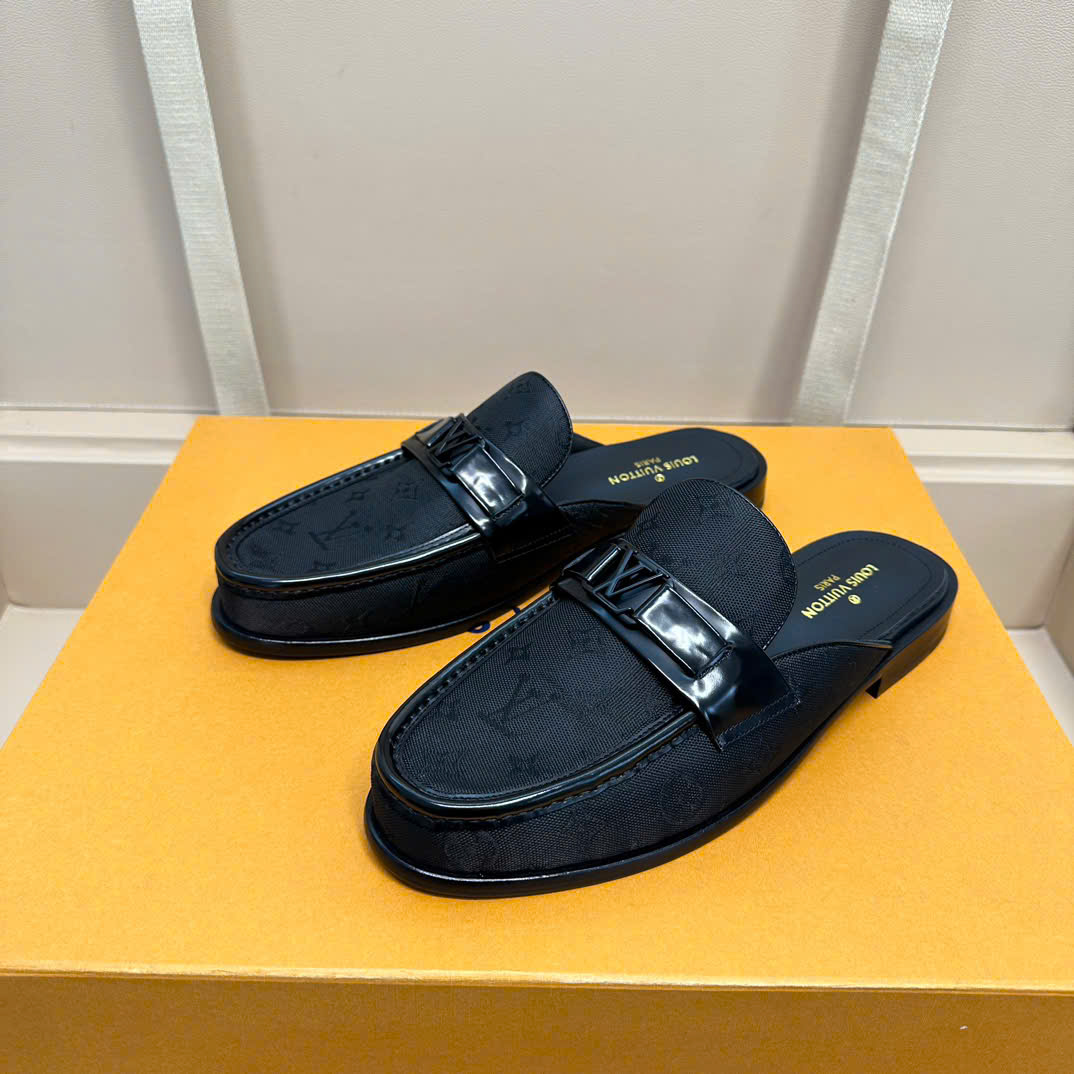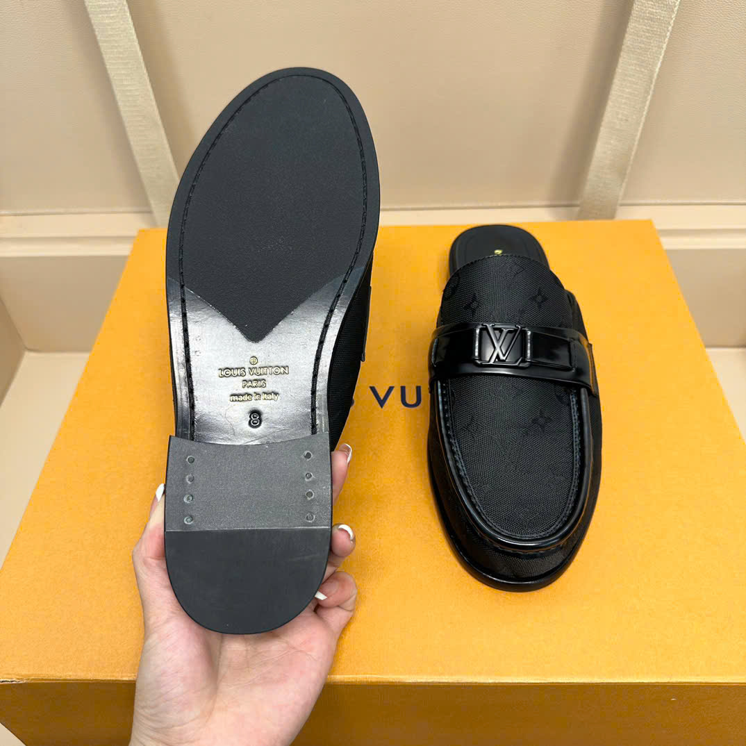 Ảnh chụp thật Sục nam Louis Vuitton màu đen họa tiết hoa mờ GLLV110 hàng siêu cấp do xưởng sản xuất cung cấp.
