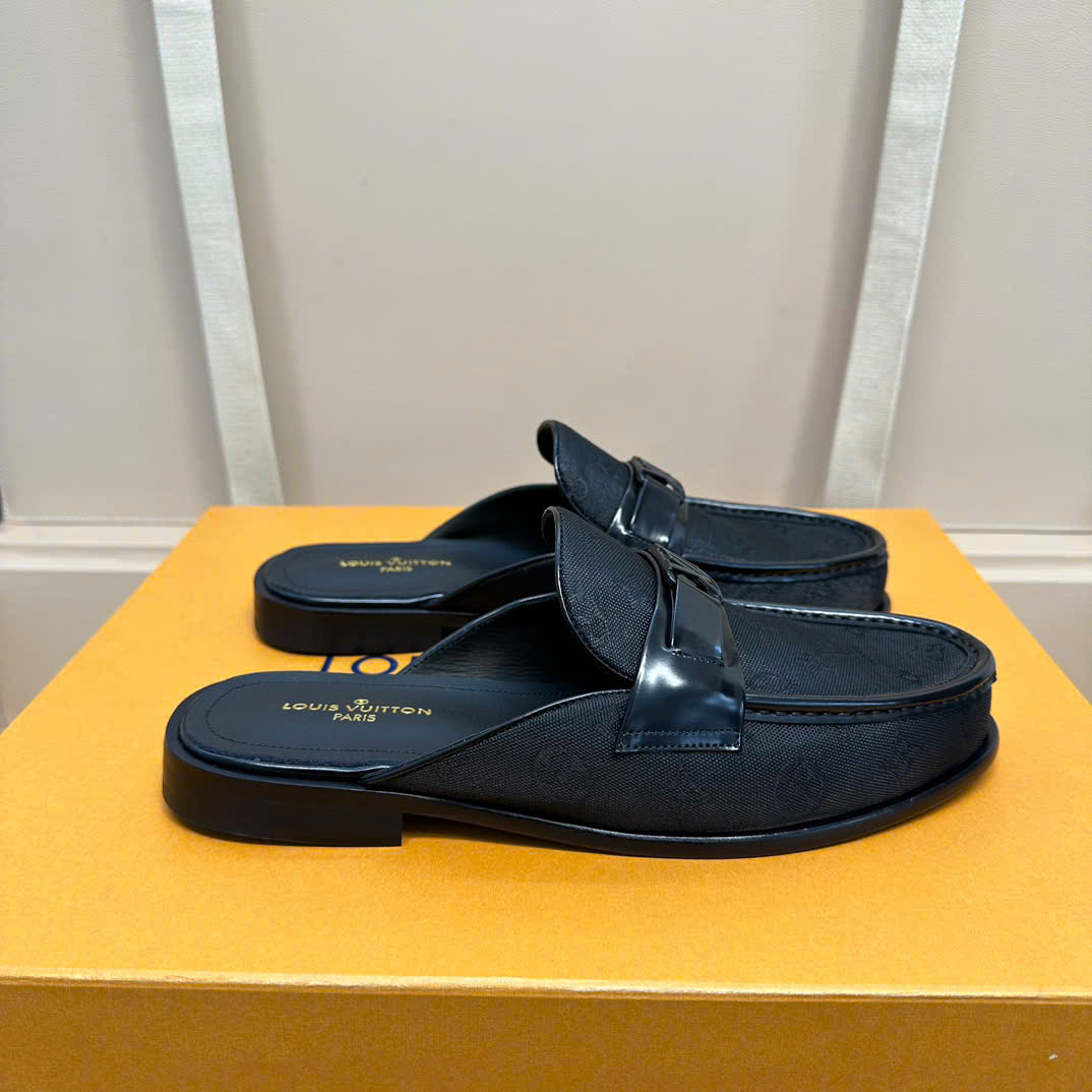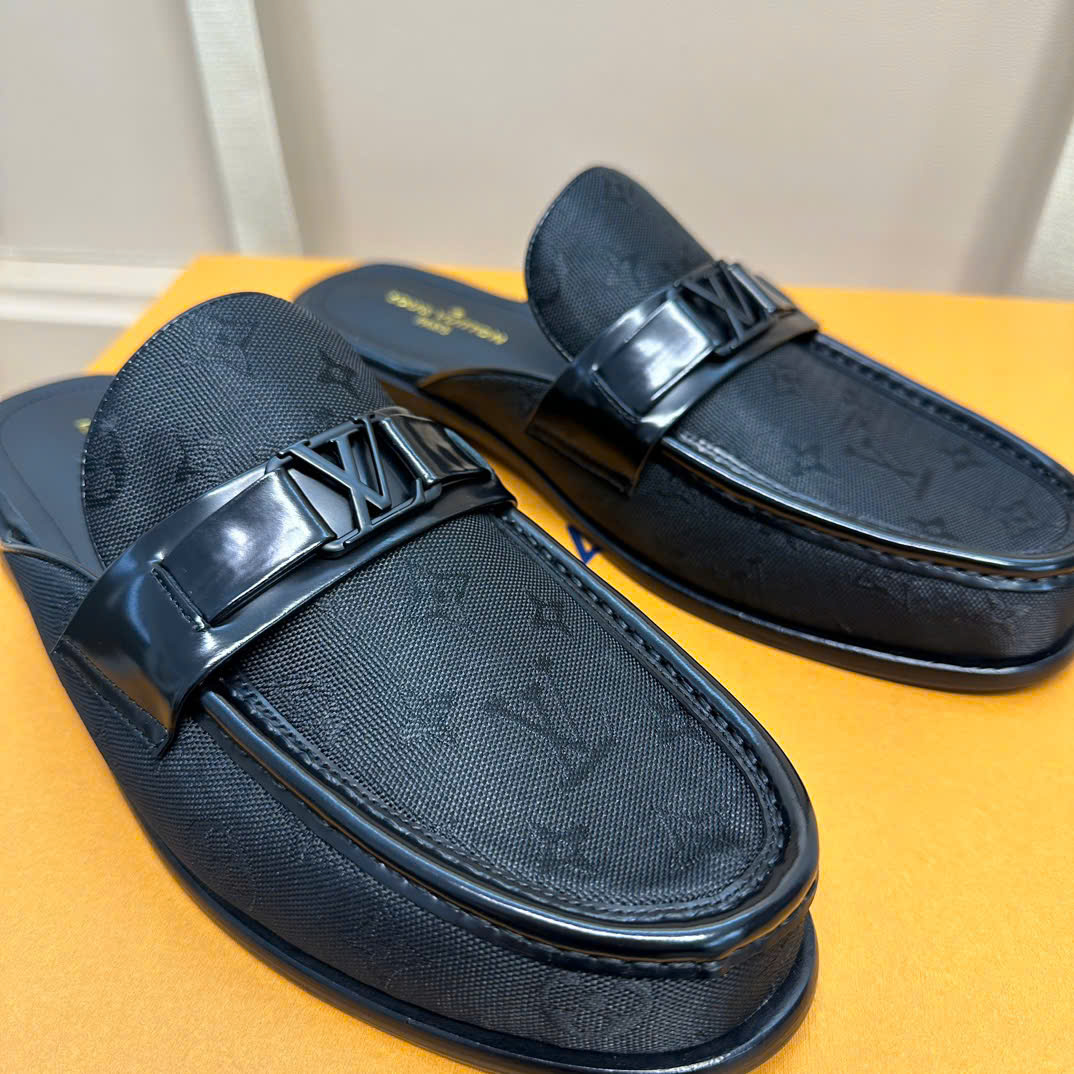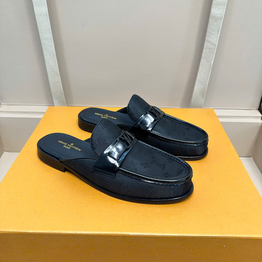 Ảnh chụp thật Sục nam Louis Vuitton màu đen họa tiết hoa mờ GLLV110 hàng siêu cấp do xưởng sản xuất cung cấp.