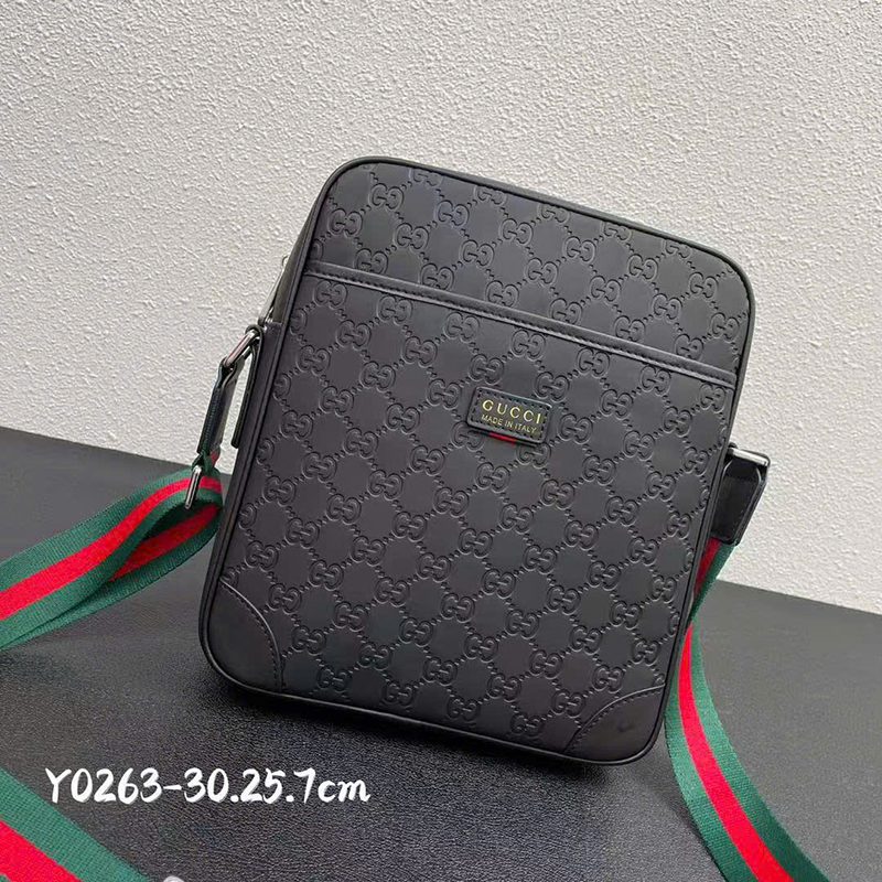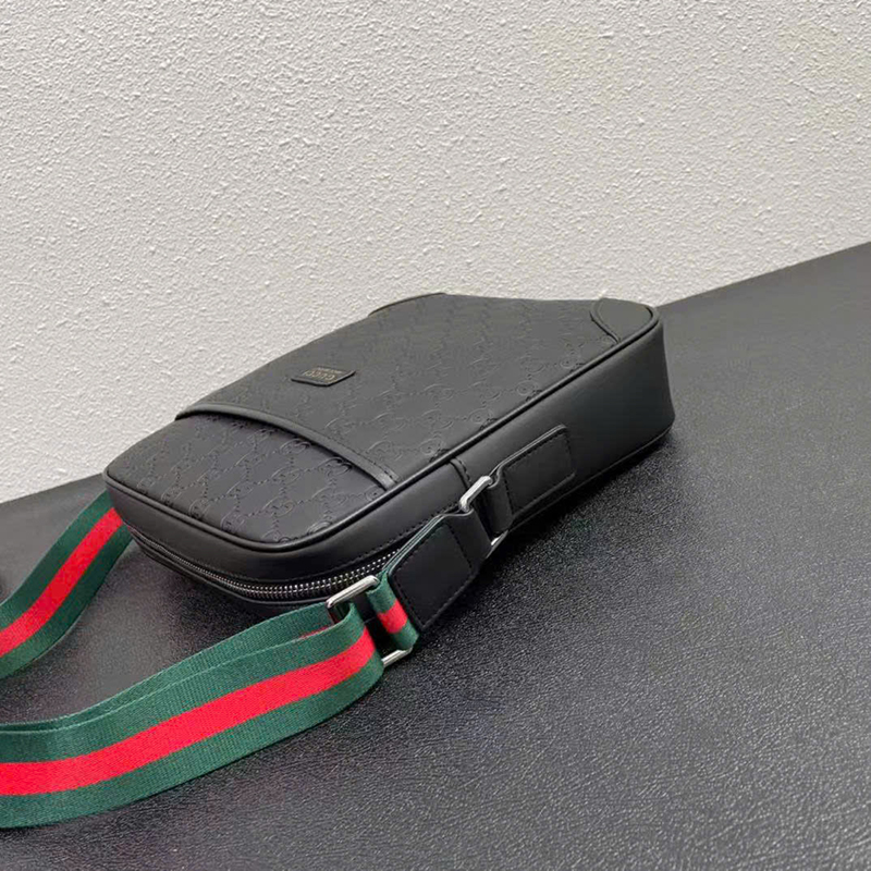 Ảnh chụp thật Túi đeo chéo Gucci nam màu đen dập logo dáng dọc TNGC75 hàng siêu cấp do xưởng sản xuất cung cấp.