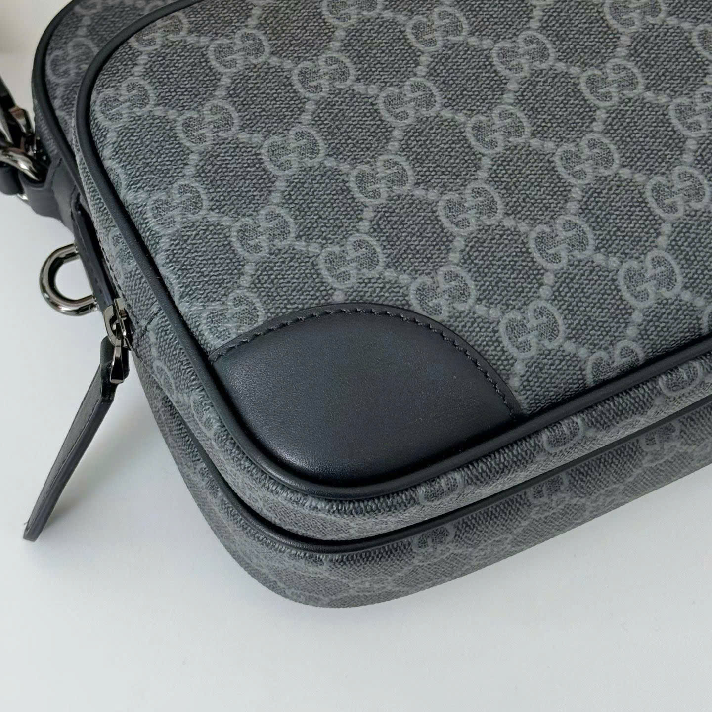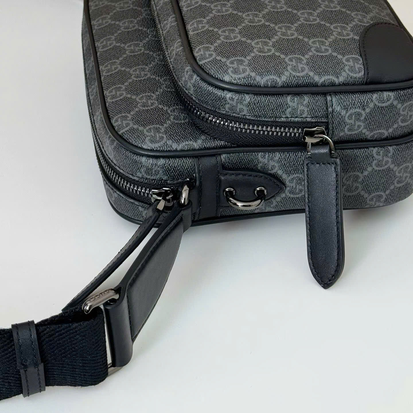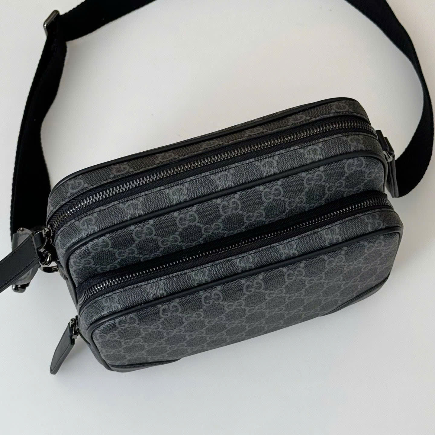 Ảnh chụp thật Túi đeo chéo Gucci nam màu đen in logo dáng hai khoá TNGC80 hàng siêu cấp do xưởng sản xuất cung cấp.