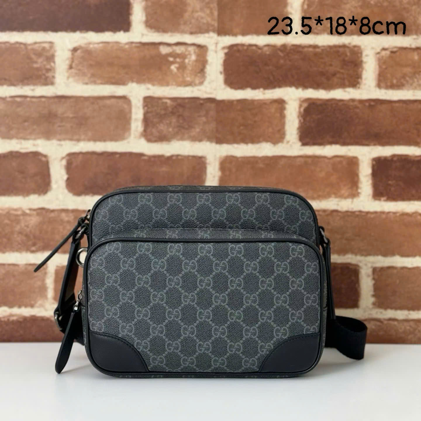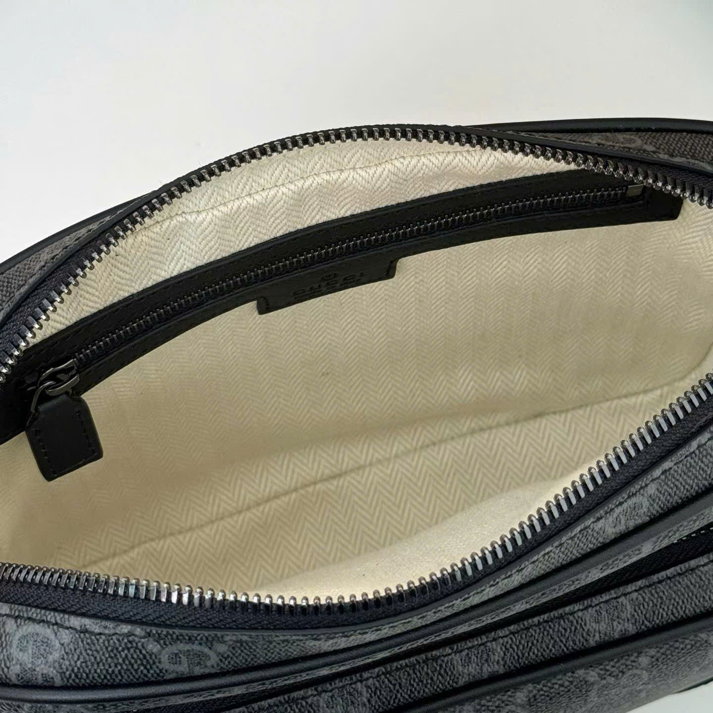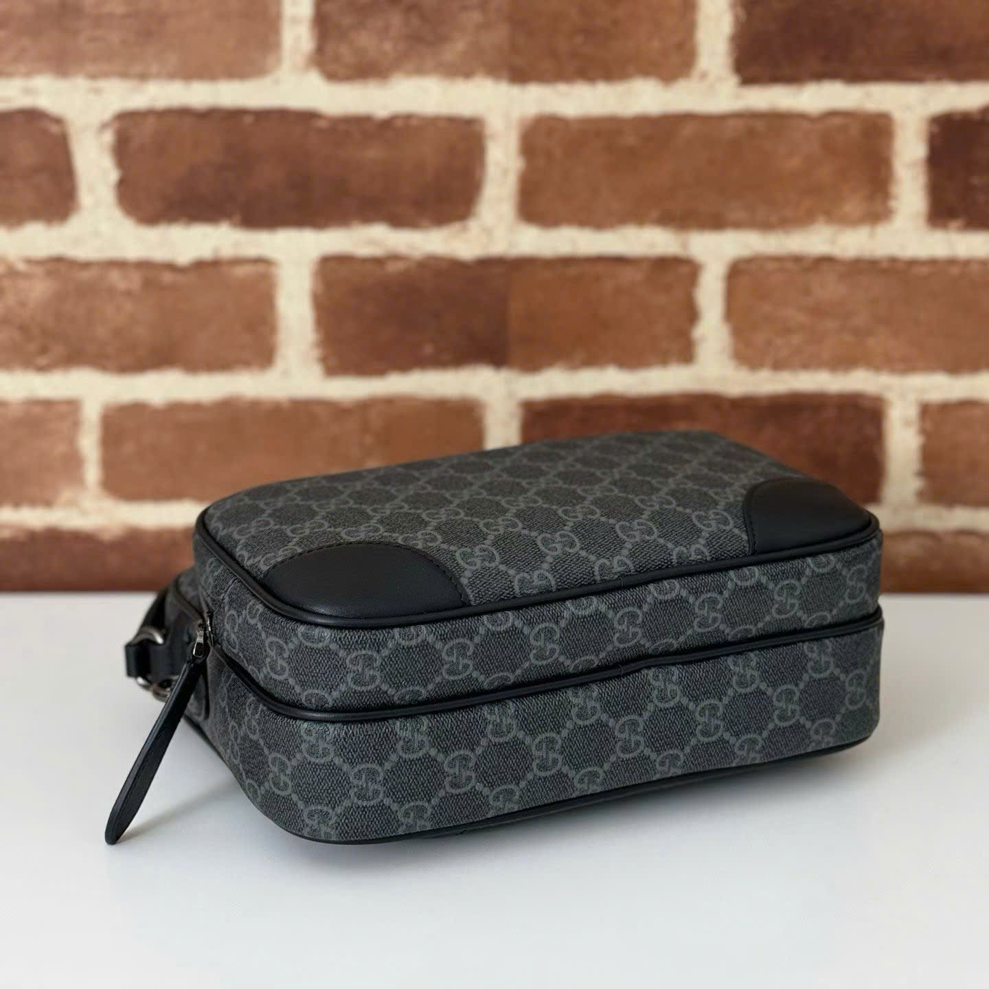 Ảnh chụp thật Túi đeo chéo Gucci nam màu đen in logo dáng hai khoá TNGC80 hàng siêu cấp do xưởng sản xuất cung cấp.