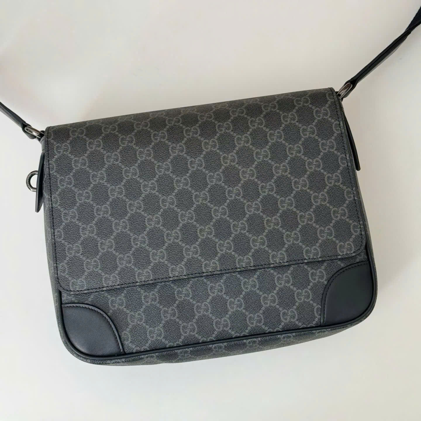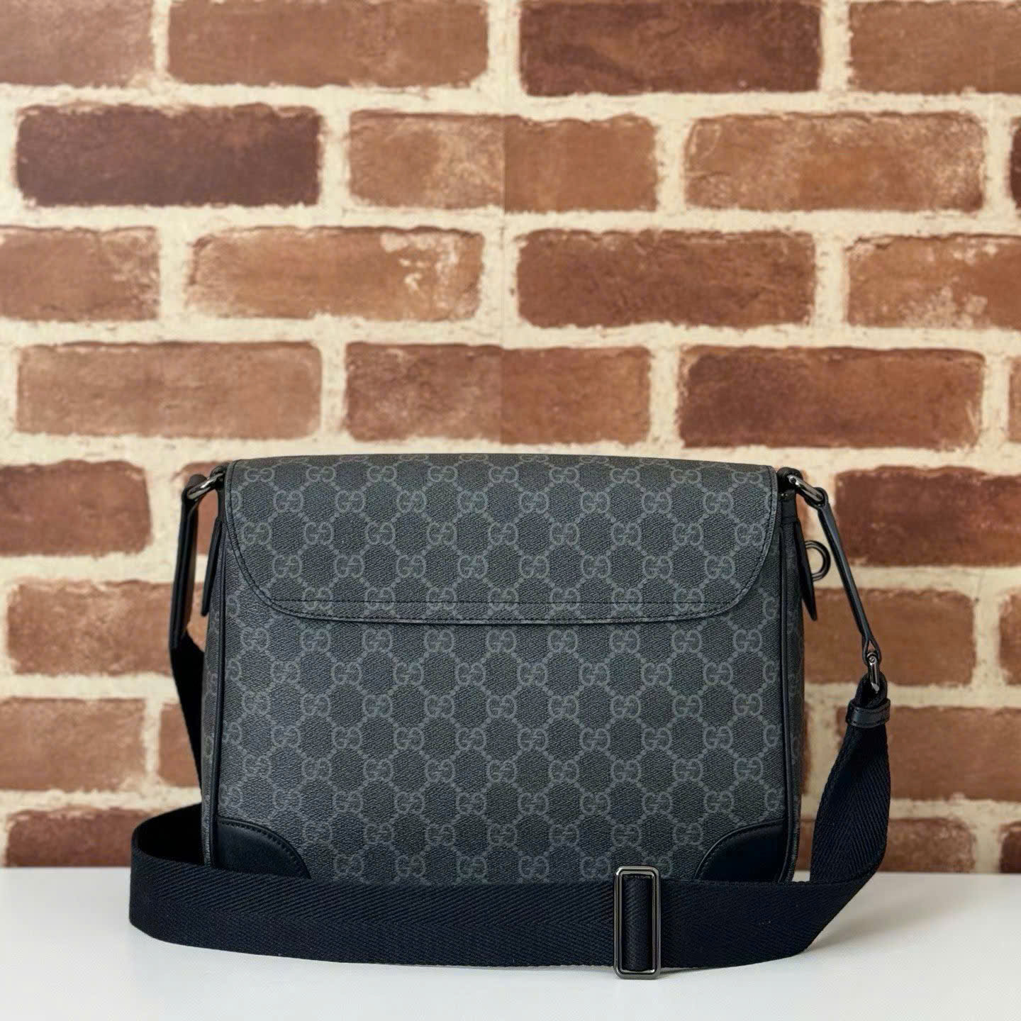 Ảnh chụp thật Túi đeo chéo Gucci nam màu đen in logo dáng nắp đậy TNGC79 hàng siêu cấp do xưởng sản xuất cung cấp.