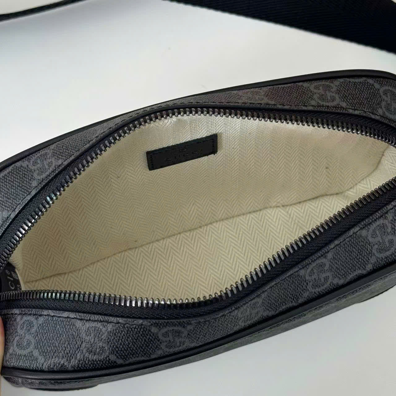 Ảnh chụp thật Túi đeo chéo Gucci nam màu đen in logo dáng ngang khóa kéo TNGC77 hàng siêu cấp do xưởng sản xuất cung cấp.