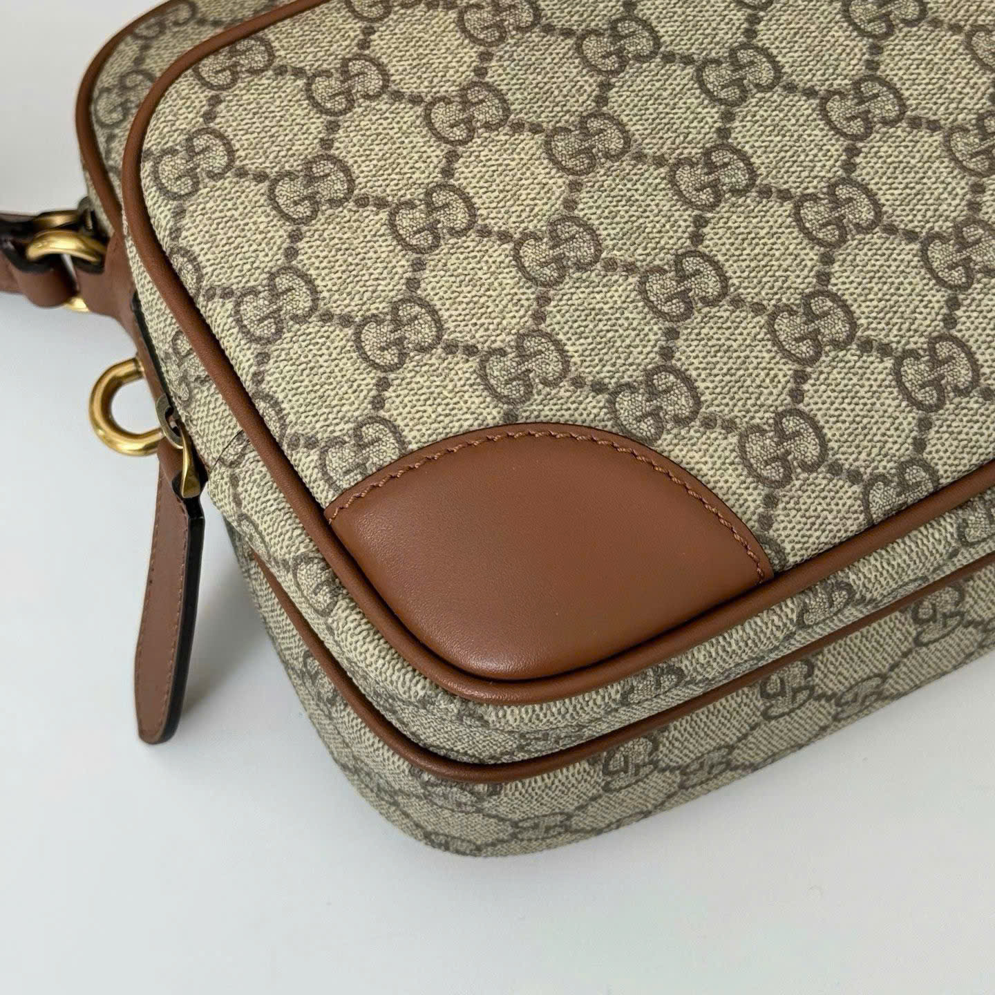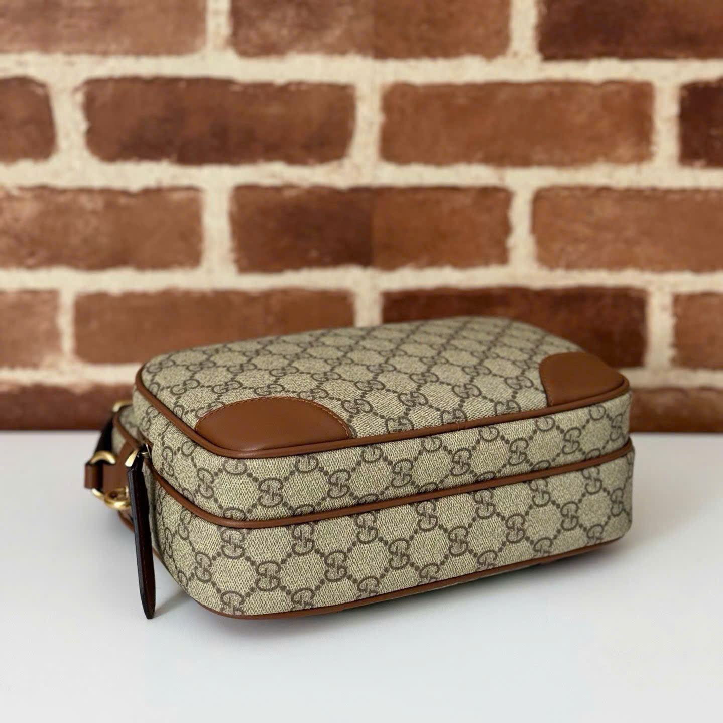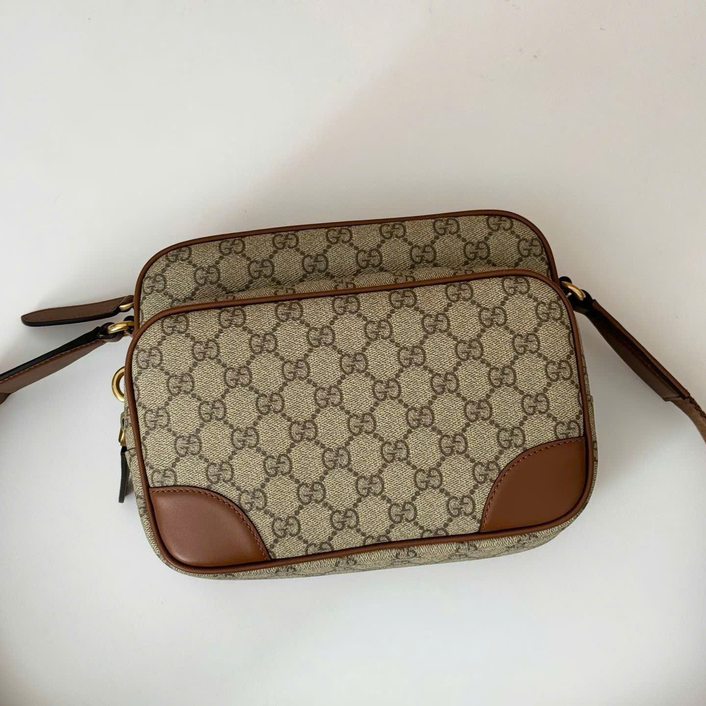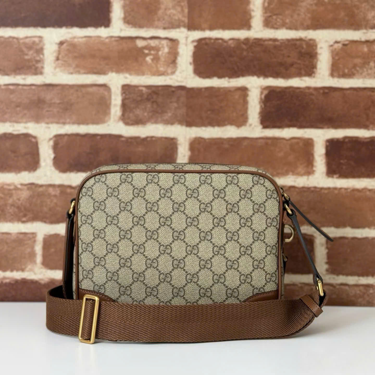 Ảnh chụp thật Túi đeo chéo Gucci nam màu nâu in logo dáng hai khoá TNGC81 hàng siêu cấp do xưởng sản xuất cung cấp.