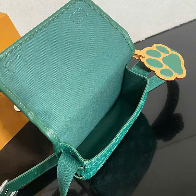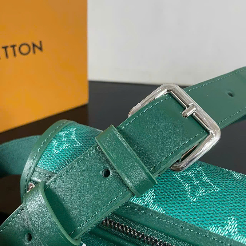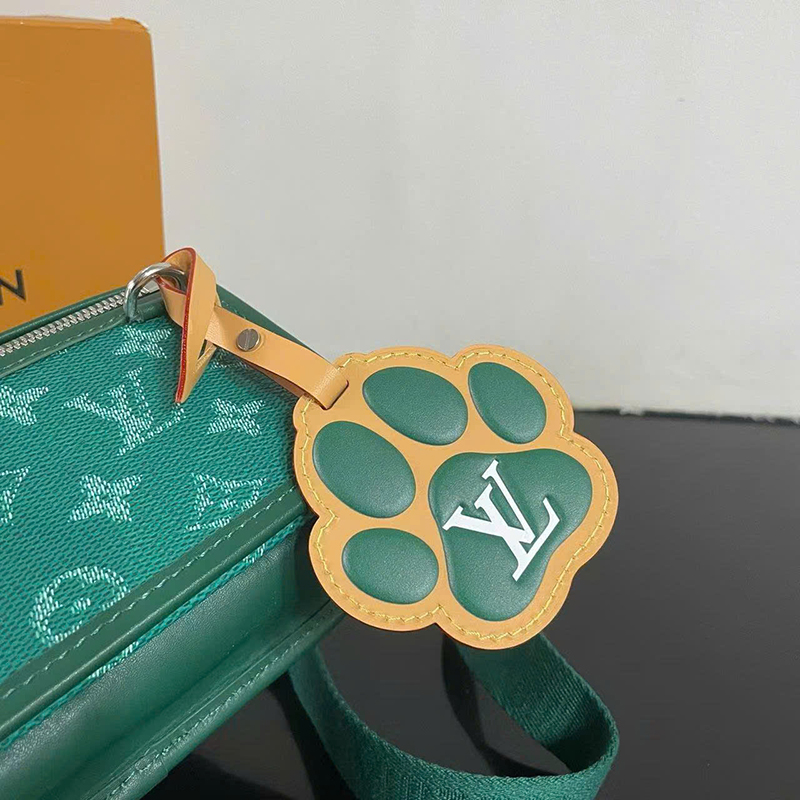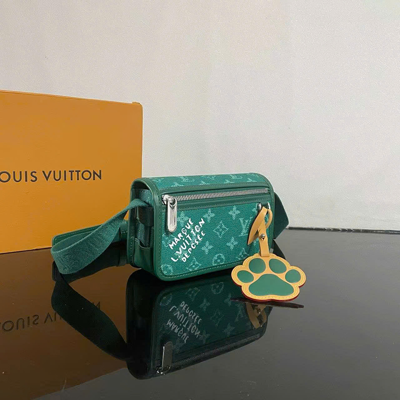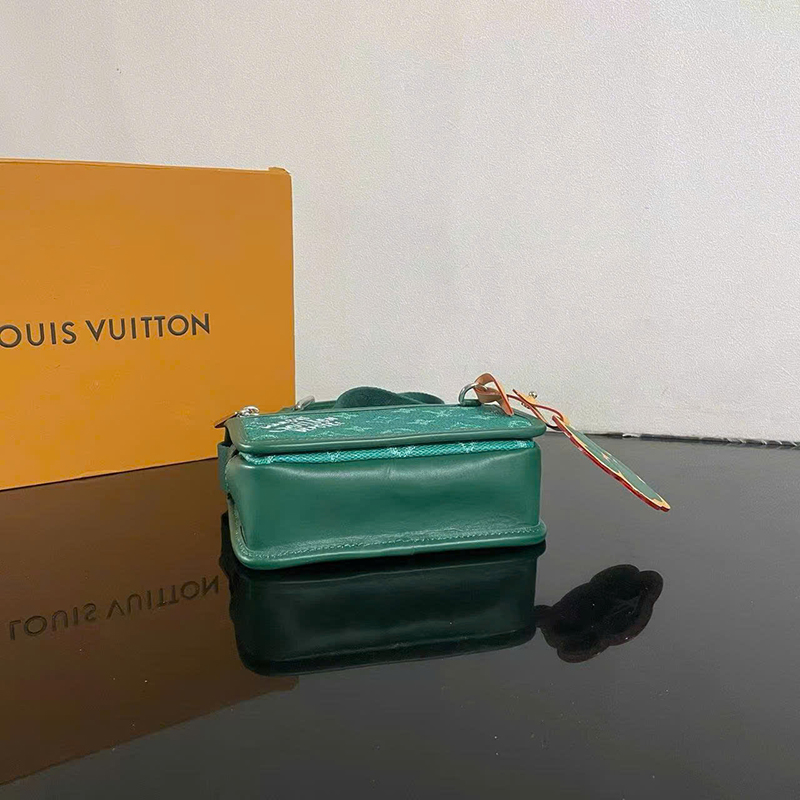 Ảnh chụp thật Túi đeo chéo Louis Vuitton nam màu xanh lục họa tiết hoa logo kèm charm size nhỏ dáng chữ nhật TNLV106 hàng siêu cấp do xưởng sản xuất cung cấp.
