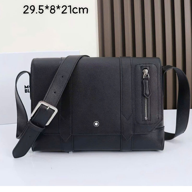 Ảnh chụp thật Túi đeo chéo Montbanc da trơn đen hoạ tiết hai soc dọc nắp đậy TNM02 hàng siêu cấp do xưởng sản xuất cung cấp.