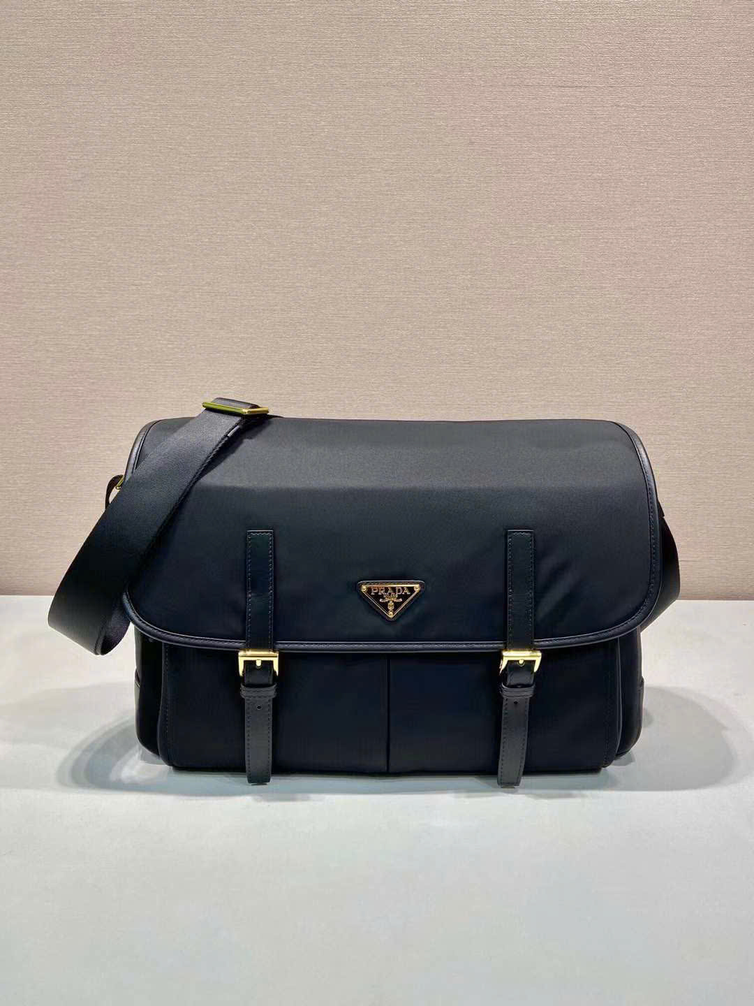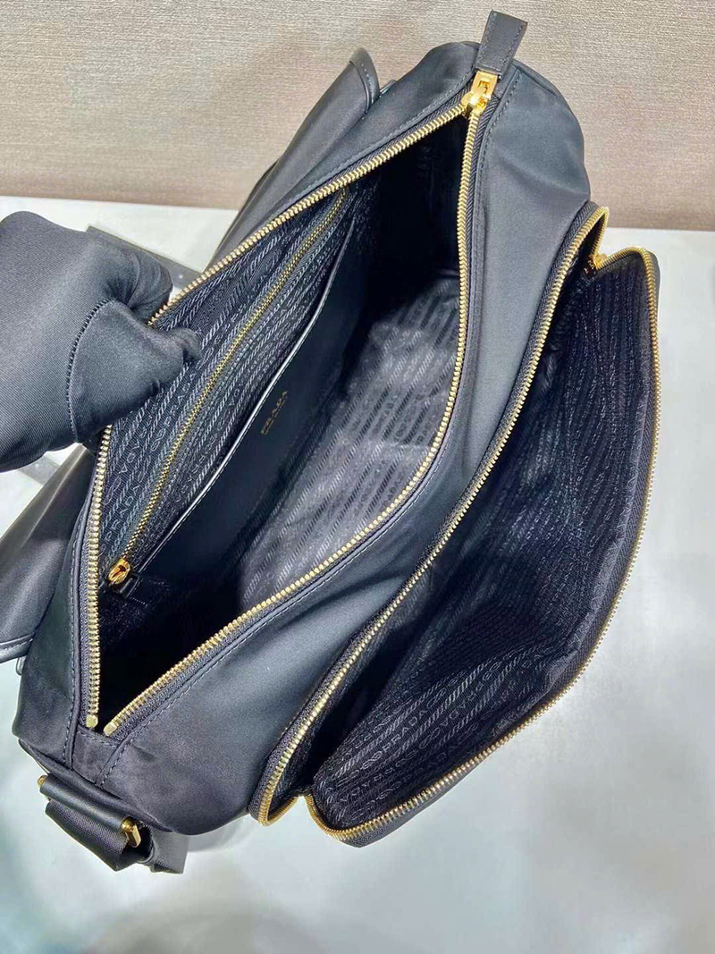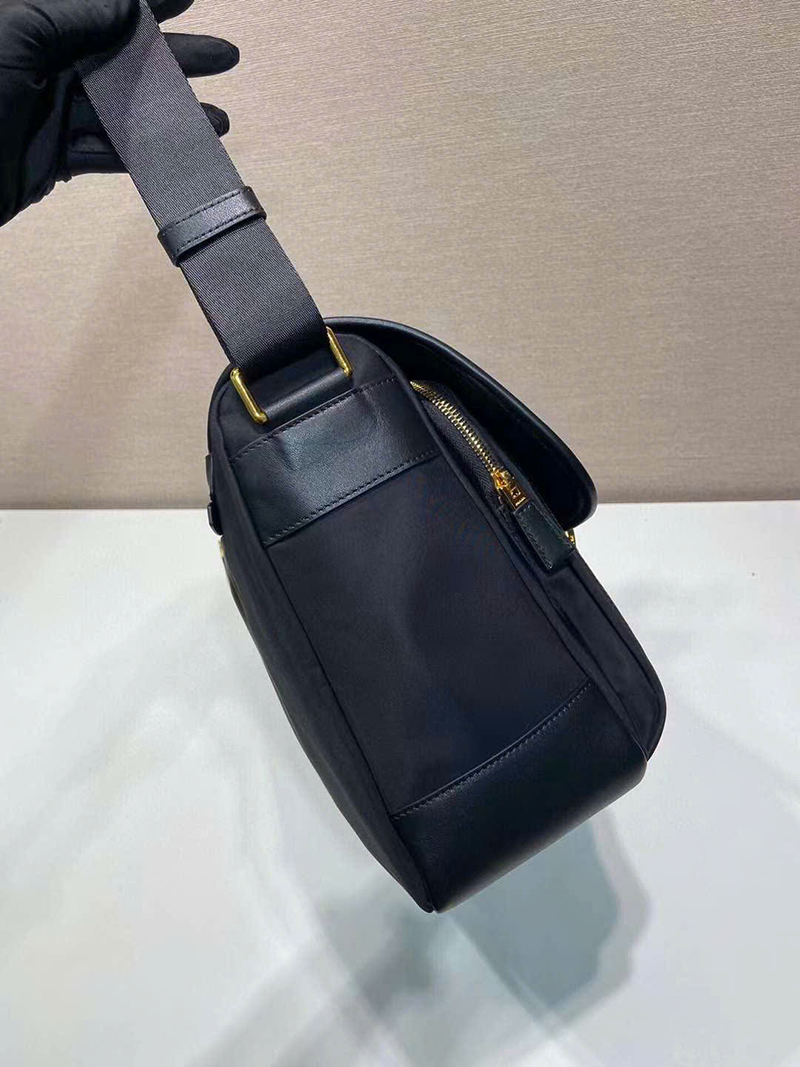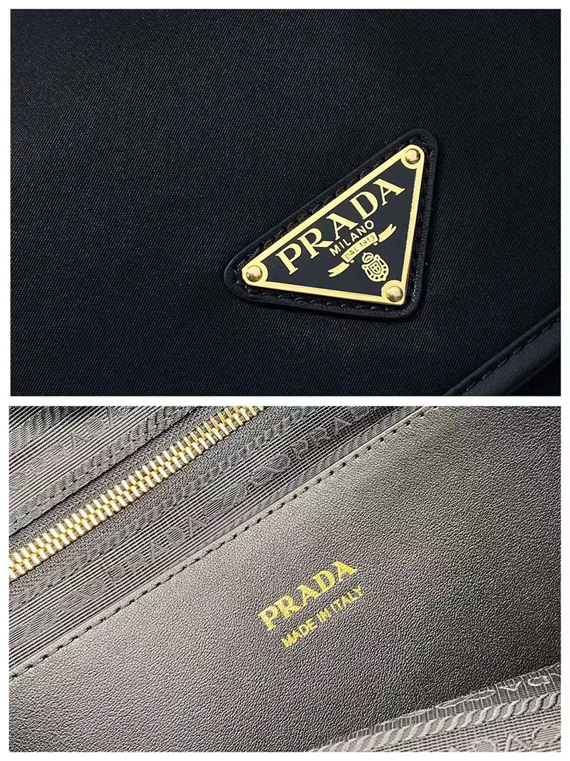 Ảnh chụp thật Túi đeo chéo Prada màu đen nắp đậy logo vàng TNPR22 hàng siêu cấp do xưởng sản xuất cung cấp.