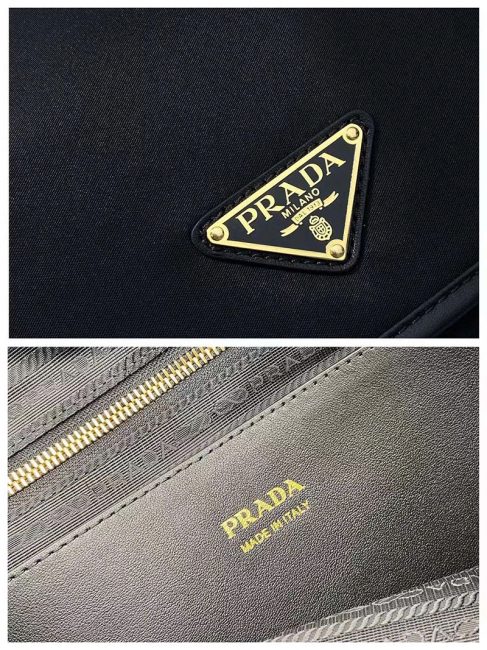 Ảnh chụp thật Túi đeo chéo Prada màu đen nắp đậy logo vàng TNPR22 hàng siêu cấp do xưởng sản xuất cung cấp.