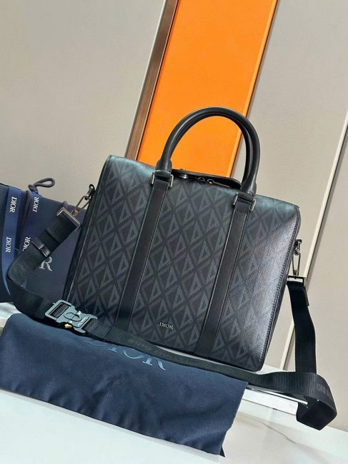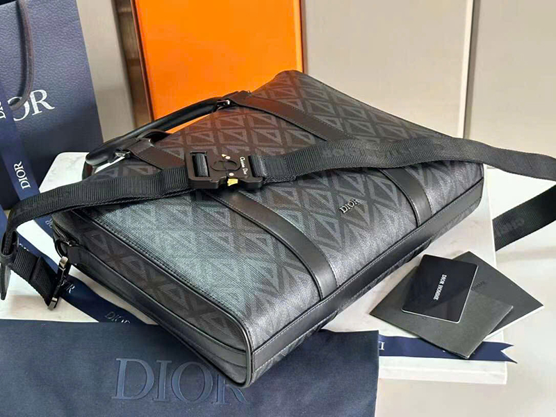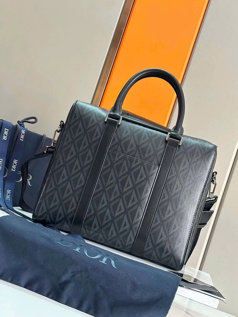Ảnh chụp thật Túi xách nam DIOR màu đen họa tiết tam giác tay xách TXDR07 hàng siêu cấp do xưởng sản xuất cung cấp.