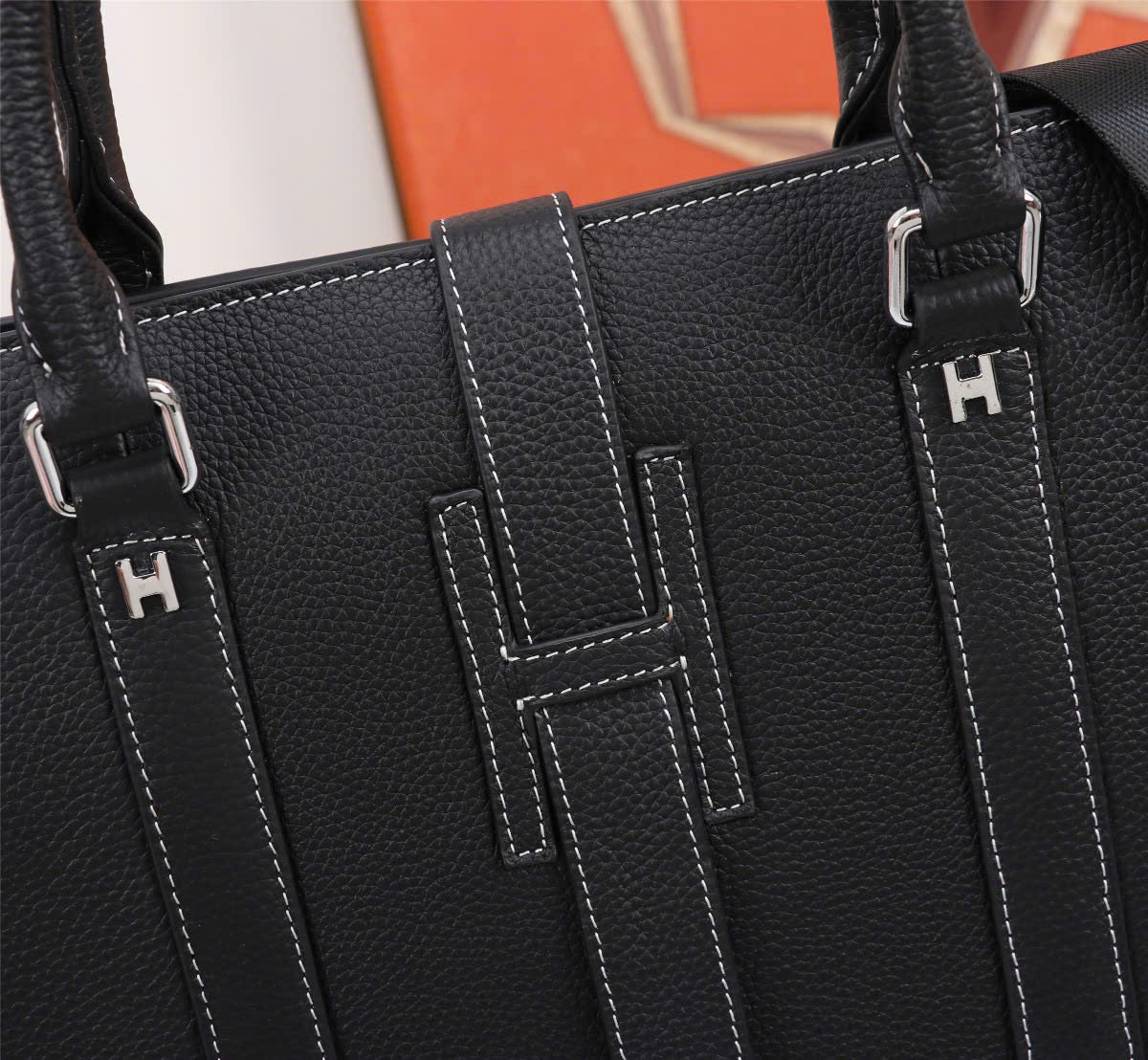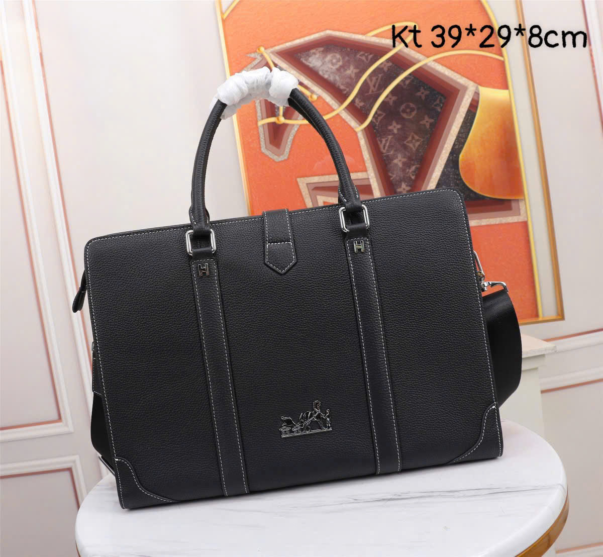 Ảnh chụp thật Túi xách nam Hermes màu đen da nhăn họa tiết logo ngựa likeauth TXHM08 hàng siêu cấp do xưởng sản xuất cung cấp.