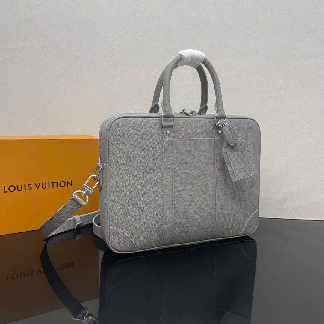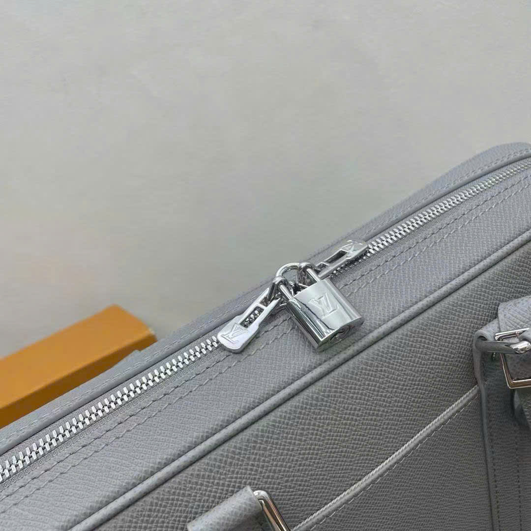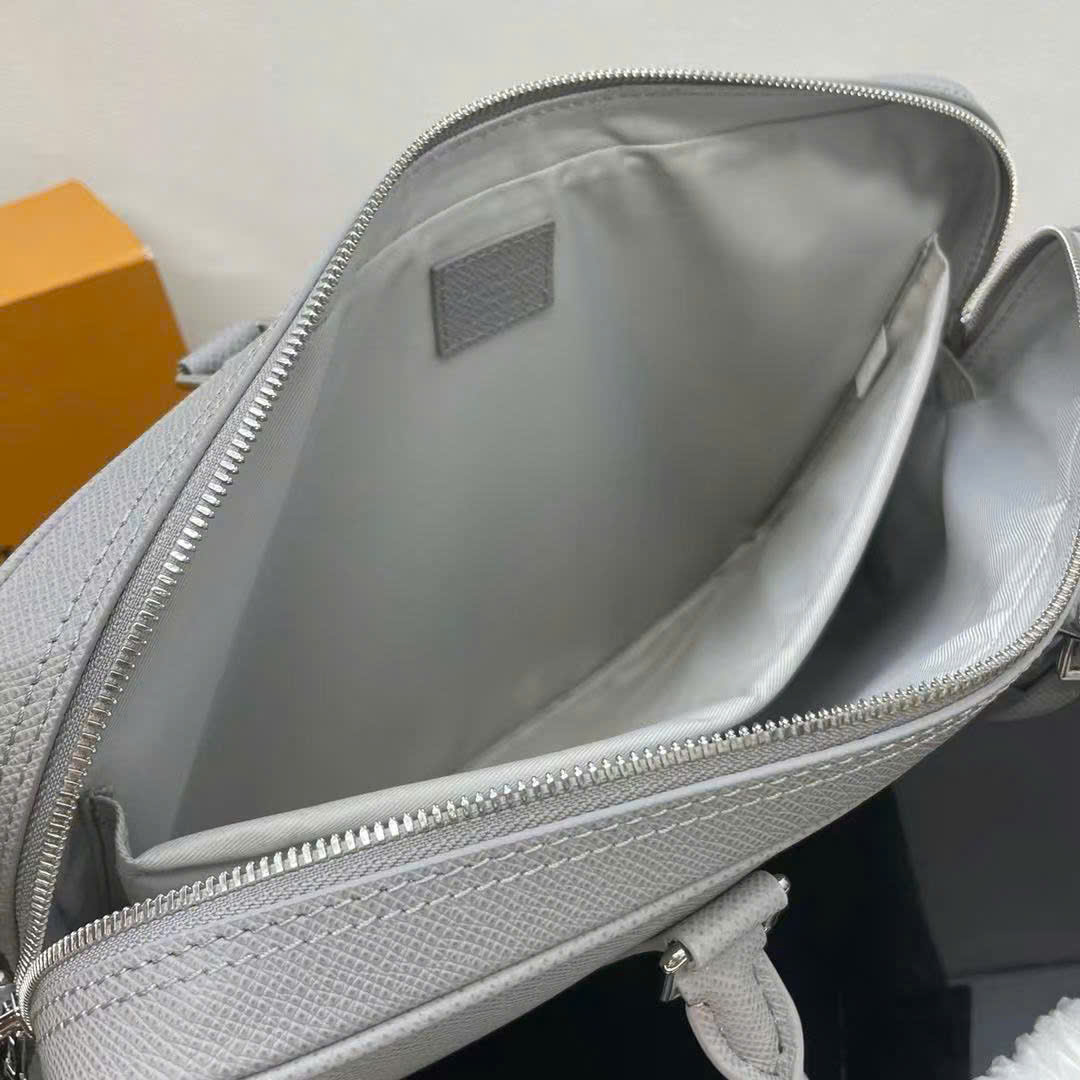 Ảnh chụp thật Túi xách nam Louis Vuitton màu xám hoạ tiết da taiga hai sọc dọc TXLV25 hàng siêu cấp do xưởng sản xuất cung cấp.