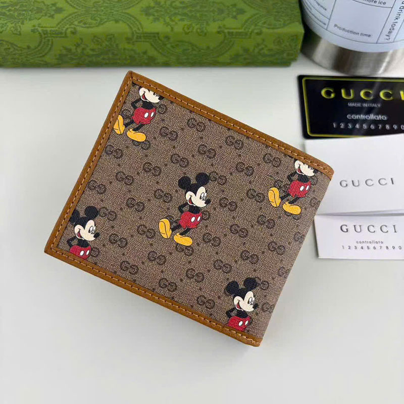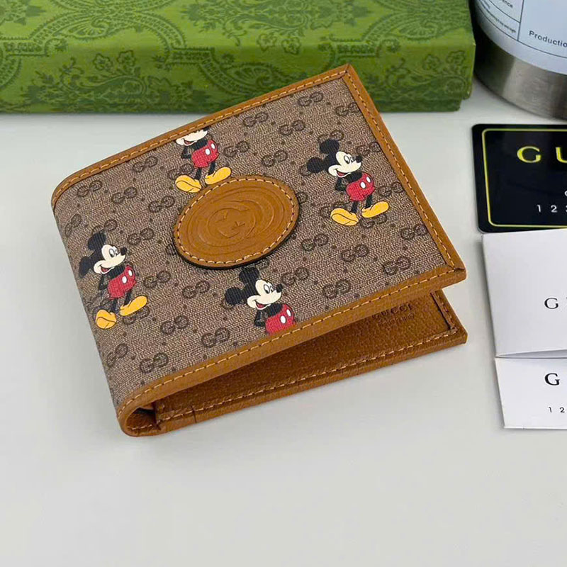 Ví nam Gucci bỏ túi màu nâu hoạ tiết hình micky logo tròn VNGC65